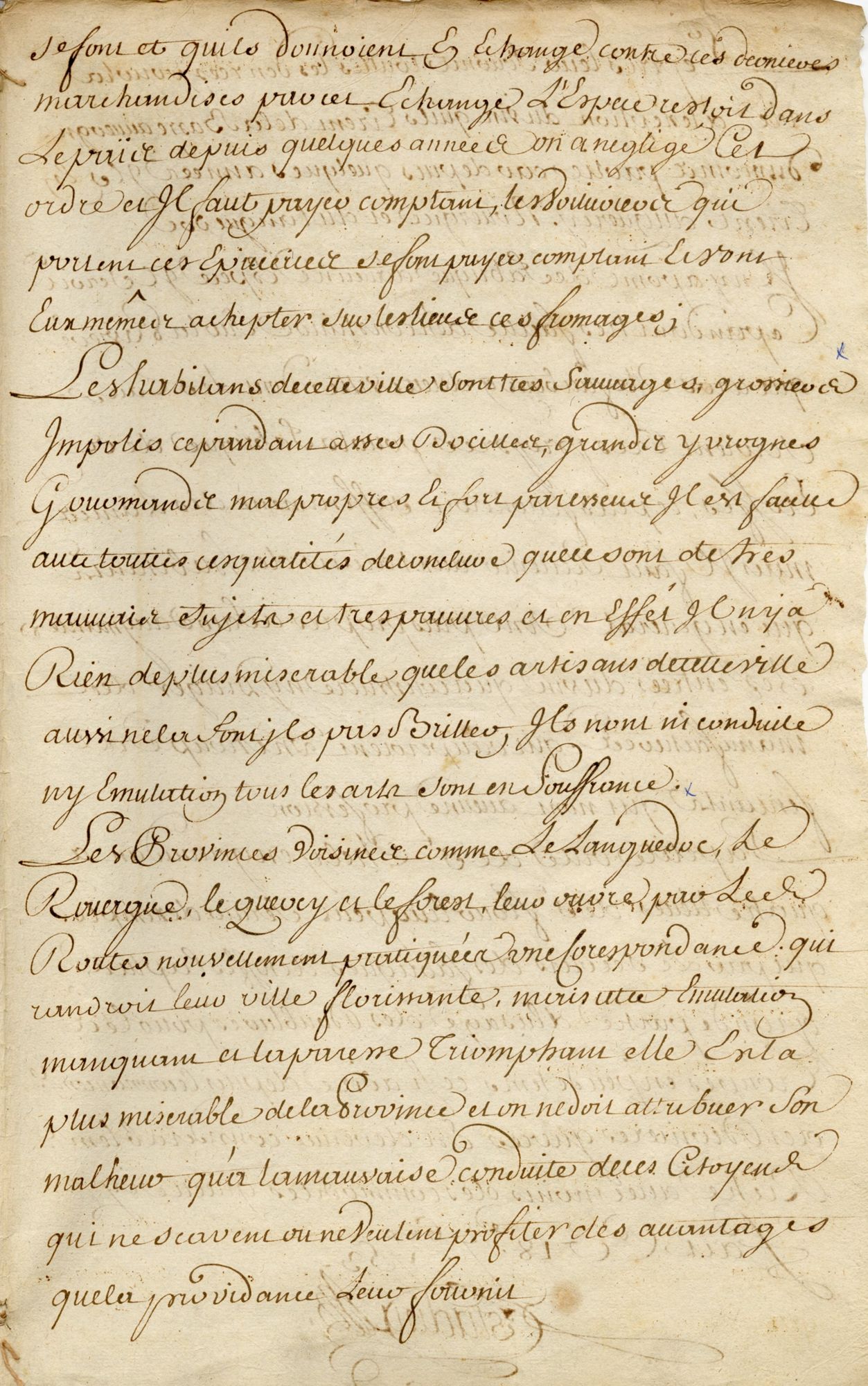 Le rôle du vingtième, présenté ici, en est un bon exemple. Dans ses « observations générales », le contrôleur Estadieu donne une description détaillée sur près de six pages : "La ville de Saint-Flour est la capitale de la Haute-Auvergne, elle est épiscopale […]. Sa situation est extrêmement élevée sur le roc, cependant bornée et commandée du côté du levant par les montagnes de la Margeride, du côté du midi par celles d'Aubrac, du couchant celles du Cantal et du septentrion celles du Mont-Dore, de sorte qu’elle est exposée à tous les inconvénients de ces montagnes, qui, étant 8 mois de l'année couvertes de neige, la rendent extrêmement froide, en effet on ne connaît point de situation où le froid se fasse mieux sentir, au point que dans l’hiver on a toutes les peines du monde à sortir des maisons, et on observe par surcroit de malheur pour les habitants que le bois y est extrêmement rare. La ville, compris son faubourg, contient 640 maisons laïques très mal bâties et plus mal distribuées […]. L'évêque en est seigneur spirituel et en cette qualité est gros décimateur. Il est encore seigneur temporel à cause de son évêché et a la haute, moyenne et basse justice. Il y a un chapitre cathédral composé de 4 dignités, de 20 chanoines et de 20 prébendiers, un chapitre collégial composé de la dignité de prévôt et de 15 chanoines, une seule paroisse desservie par un curé, 2 vicaires et 12 communalistes. Il y a un séminaire dirigé par des prêtres de Saint Lazare, assez bien bâti, très mal situé et aussi mal distribué, mais très occupé, ces montagnes donnant beaucoup de montagnards, ils fourmillent en prêtres, les familles étant très nombreuses, et la facilité de les faire étudier fait qu'on en destine beaucoup à l'Eglise […]. Les patrimoniaux et les octrois forment un revenu de 5420 livres. Il y a trois marchés par semaine et cinq foires par an peu considérables […] ». Mais il ne se contente pas de cette description et se permet des commentaires très sévères et méprisants sur les Sanflorains présentés comme « très sauvages, grossiers, impolis, cependant assez dociles, grands ivrognes, gourmands, malpropres et fort paresseux. Il est facile, avec toutes ces qualités, de conclure que ce sont de très mauvais sujets et très pauvres […] Ils n’ont ni conduite ni émulation… ». Il estime, implacable, que si Saint-Flour est une des villes les plus favorisées sous le rapport des routes « cette émulation manquant et la paresse triomphant, elle est la plus misérable de la province et on doit attribuer son malheur à la mauvaise conduite de ses citoyens qui ne savent ou ne veulent profiter des avantages que la Providence leur fournit ».