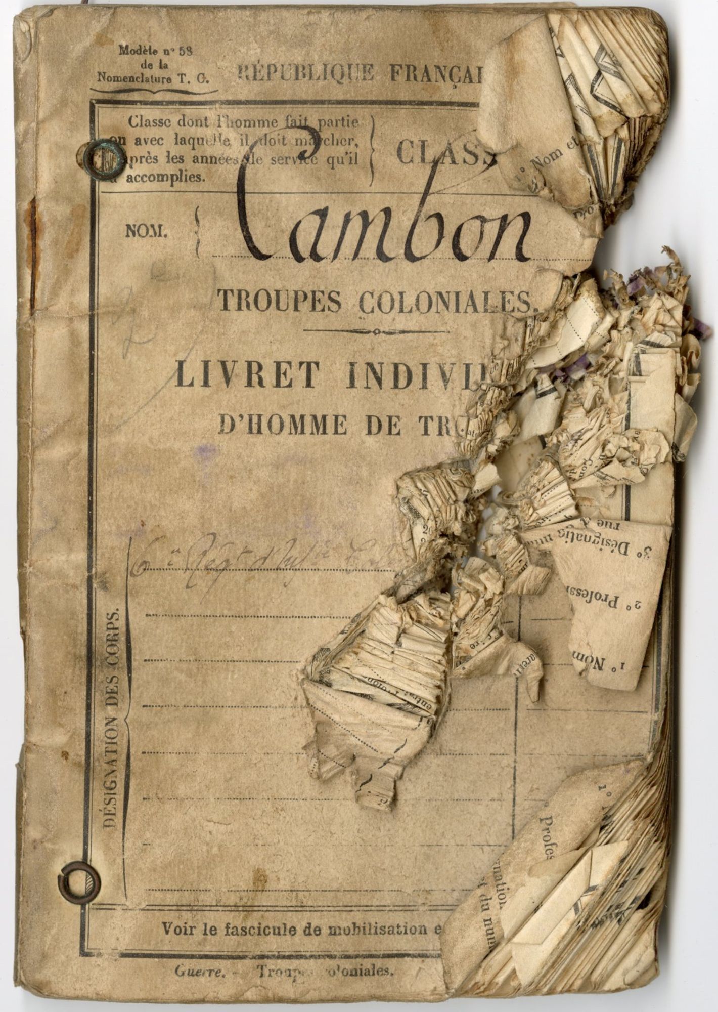 Livret militaire d’une gueule cassée