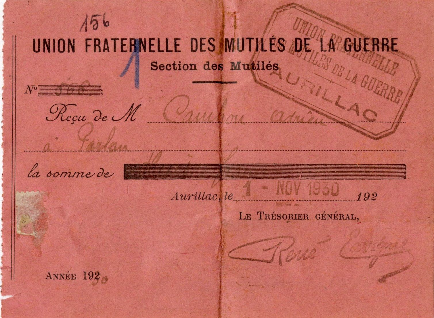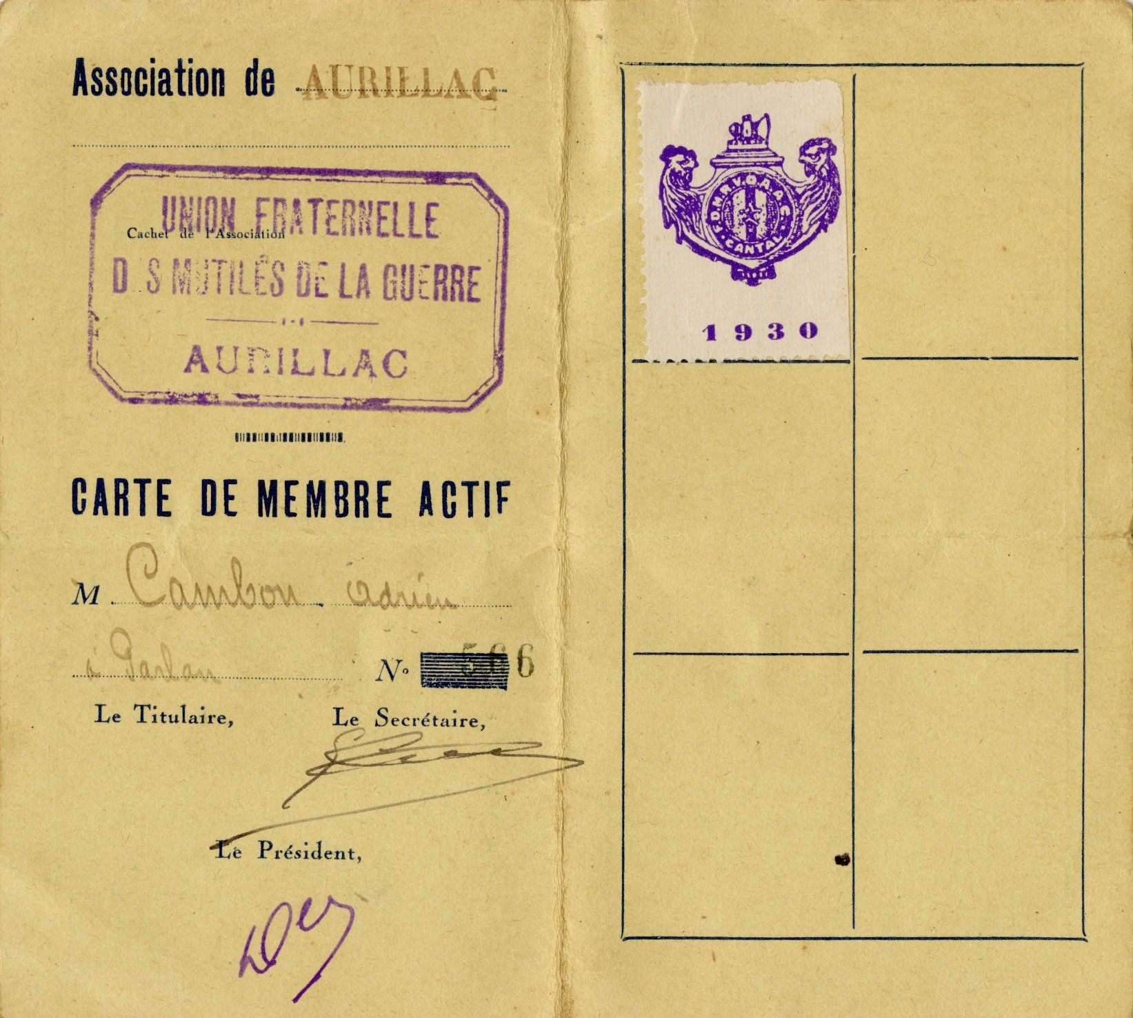 Adrien Cambon rentre dans son foyer à Parlan et reprend son travail de sabotier. Il est membre actif de l’Union fraternelle des mutilés de la guerre du Cantal.