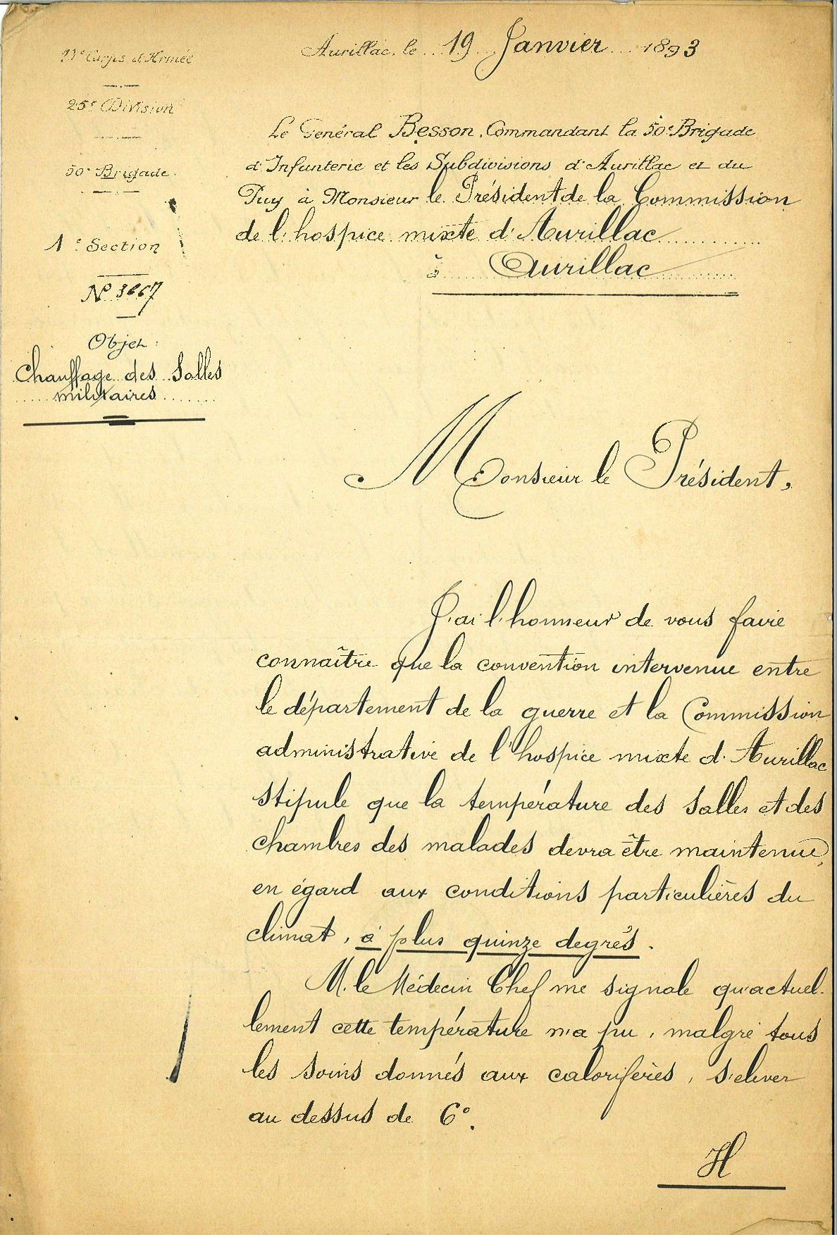 À la recherche du confort moderne : températures préconisées et ressenties à l’hôpital d’Aurillac [vers 1891]