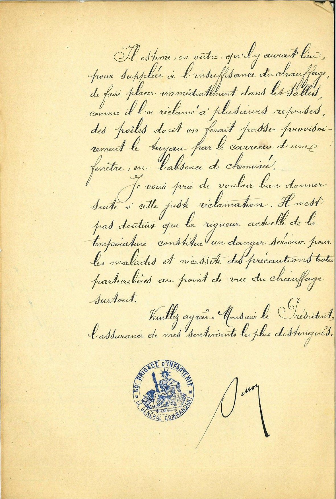 Longtemps situé dans le quartier des Carmes, l’hôpital déménage en 1892 vers son site actuel de l’avenue de la République. En 1876 la municipalité acquiert les terrains des enclos Combes et Sarret qui serviront pour la construction du nouvel hôpital-hospice entre 1890 et 1893. C’est dans ce contexte qu’est prévue l’installation du chauffage central à l’asile d’aliénés. L’architecte Lucien Magne, en charge des travaux, rédige un rapport sur les divers systèmes proposés pour le chauffage avec l’emploi, au choix, de l’air chaud, de l’eau chaude ou de la vapeur. Bien qu’il n’ait pas sa préférence, mais compte-tenu de la modicité du budget dont il dispose, Lucien Magne opte pour le chauffage par circulation d’eau chaude. Il le présente tout de même comme un progrès en regard du chauffage avec poêles dont il nous dit que « l’usage est presque complétement abandonné aujourd’hui » puisqu’ils ont « l’inconvénient de donner un chauffage inégal » et « sont donc insuffisants pour satisfaire aux nombreuses exigences des établissements hospitaliers ». Pourtant, dès 1893, dans un courrier du 19 janvier, l’autorité militaire se plaint du chauffage des salles et chambres dévolues aux militaires. Une convention entre le département de la Guerre et la commission administrative de l’hospice stipule que la température devra être maintenue à 15° C. Mais le médecin-chef signale qu’en ce mois de janvier, malgré le chauffage, elle ne dépasse pas les 6° C : « Il estime, en outre, qu’il y aurait lieu pour suppléer à l’insuffisance du chauffage, de faire placer immédiatement dans les salles, comme il l’a réclamé à plusieurs reprises, des poêles dont on ferait provisoirement passer le tuyau par le carreau d’une fenêtre » …