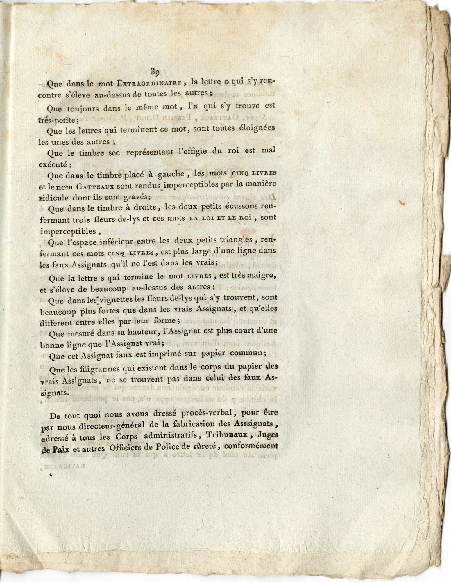 Vrai ou faux assignat ? Signes caractéristiques de falsification.
