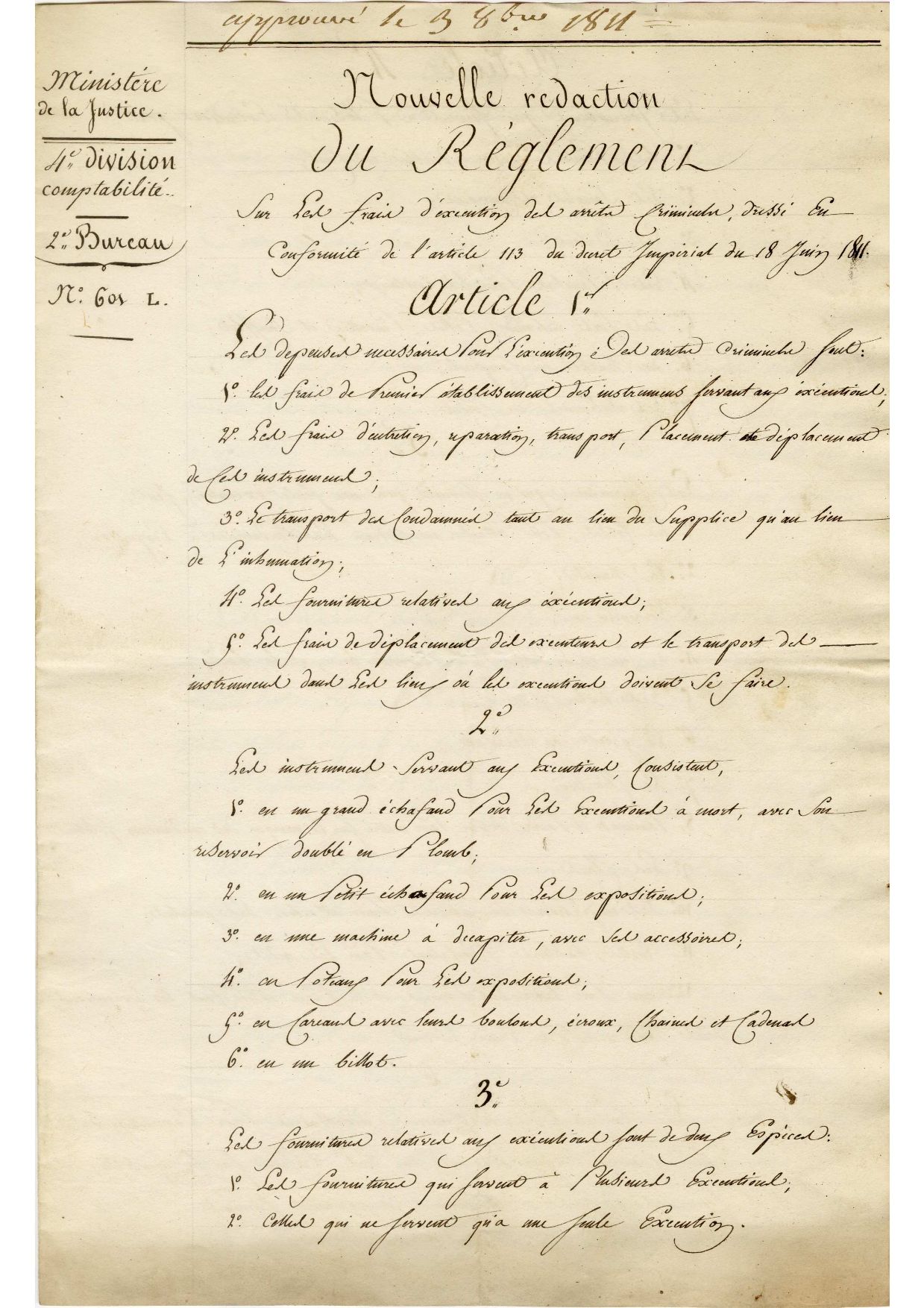 « Instruments nécessaires à l’exécution des arrêts criminels » (1811-1818)