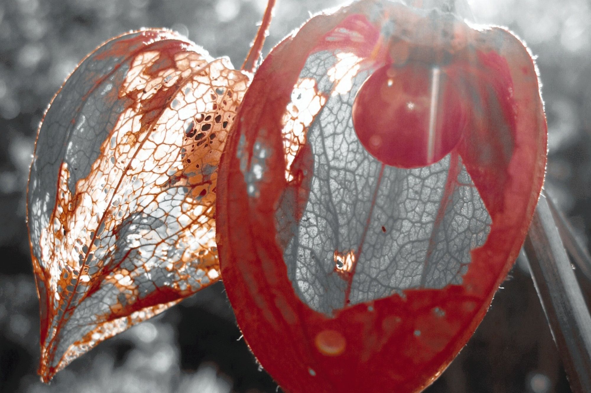 A cette collection de coquelicots s’ajoutent deux petites séries en couleur, l’une jouant sur le mouvement et l’autre élevant les alkékenges, ces petites cages végétales, au rang d’objets d’art. Pris hors de leur environnement, gorgés de couleurs vives, ils charment l’œil tout en dégageant une impression de pureté.