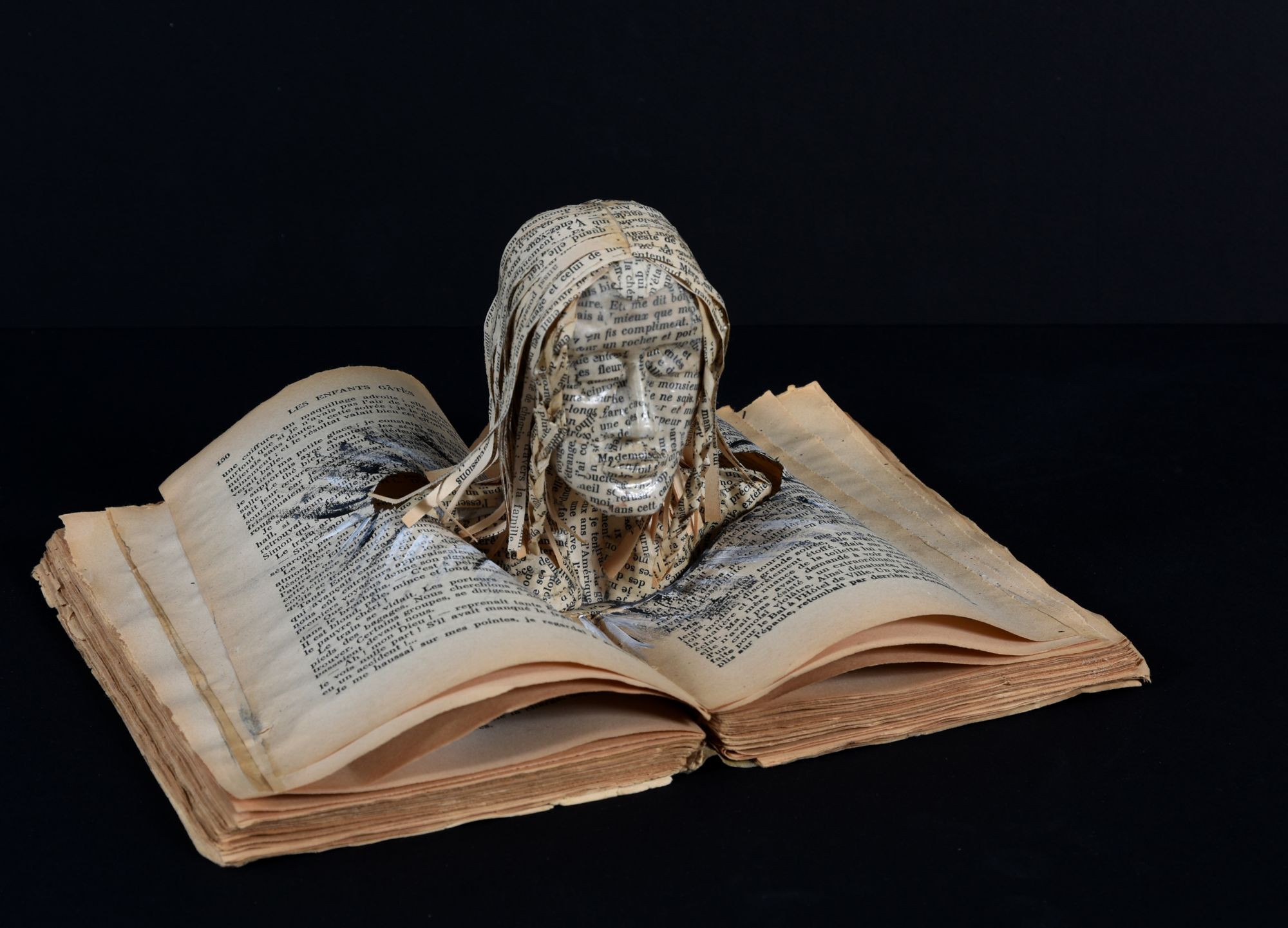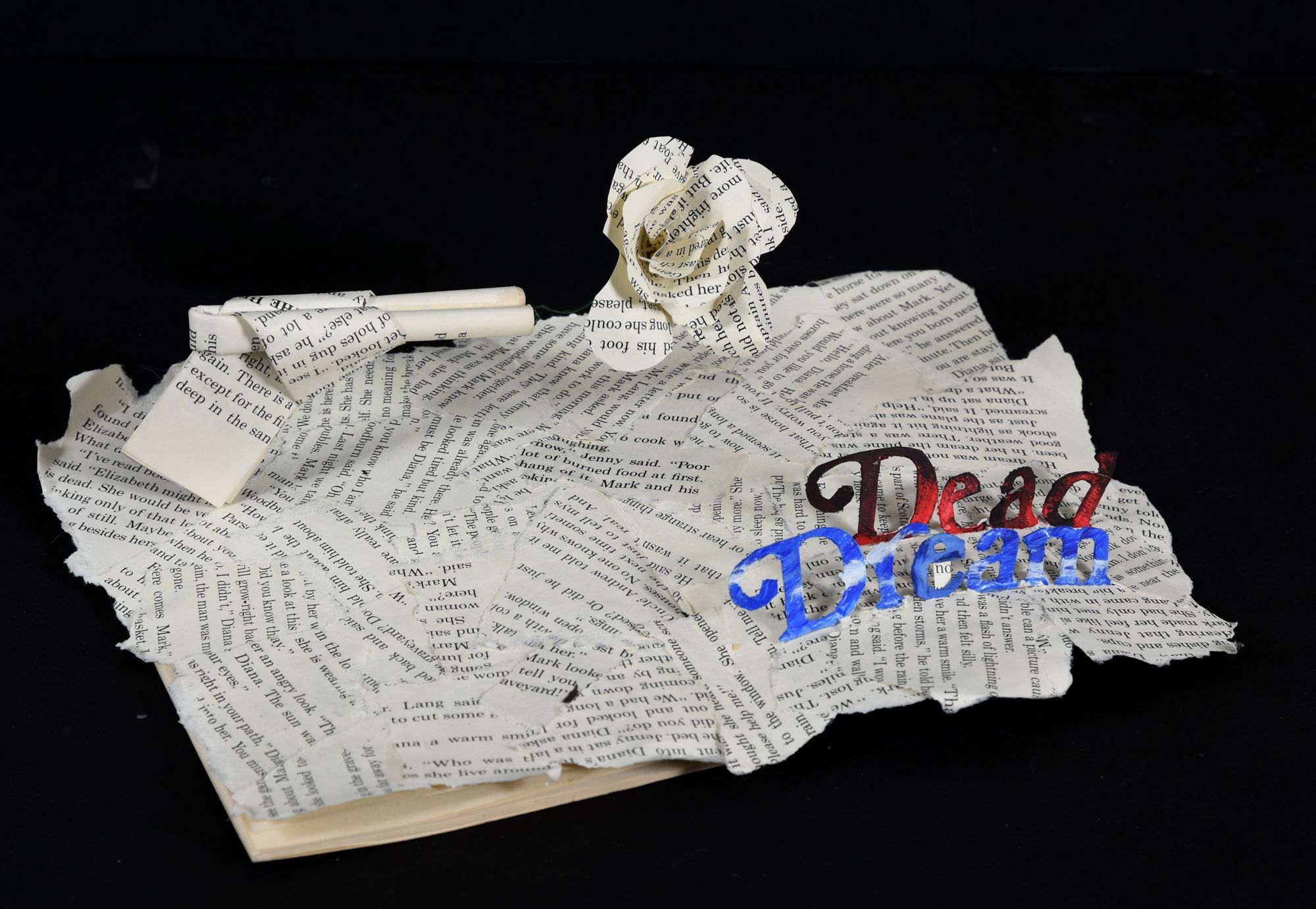 Munis de ces nouvelles connaissances, de leur propre culture, de leurs opinions et surtout de leur imagination, les élèves ont disposé de deux mois pour réfléchir et mettre en oeuvre leur projet. Passés sous le prisme de l'art, les livres abandonnés par les lycéens et mis au rebut par les documentalistes connaissent une nouvelle vie. Un réincarnation, dans laquelle on retrouve une partie de l'objet original, une page déchirée, une couverture, quelques feuilles collées, un ouvrage creusé en son centre. Auparavant support de lecture, le livre perd sa destination première mais garde son essence. Car n'est-ce pas la vocation d'un livre que de provoquer des émotions, d'emmener son interlocuteur loin du quotidien, de l'inviter à se poser des questions, à remettre en cause ce qu'il tenait pour acquis ?