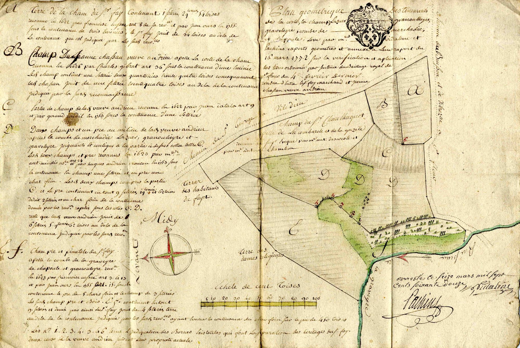 Plan de terres situées au village du Fayet à Saint-Flour (16 mars 1772)