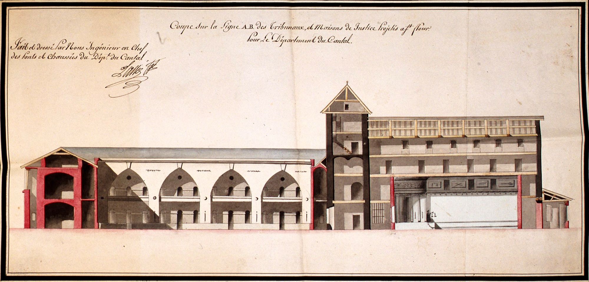 Coupe des tribunaux et maisons de justice projetés à Saint-Flour (an IV-an V)