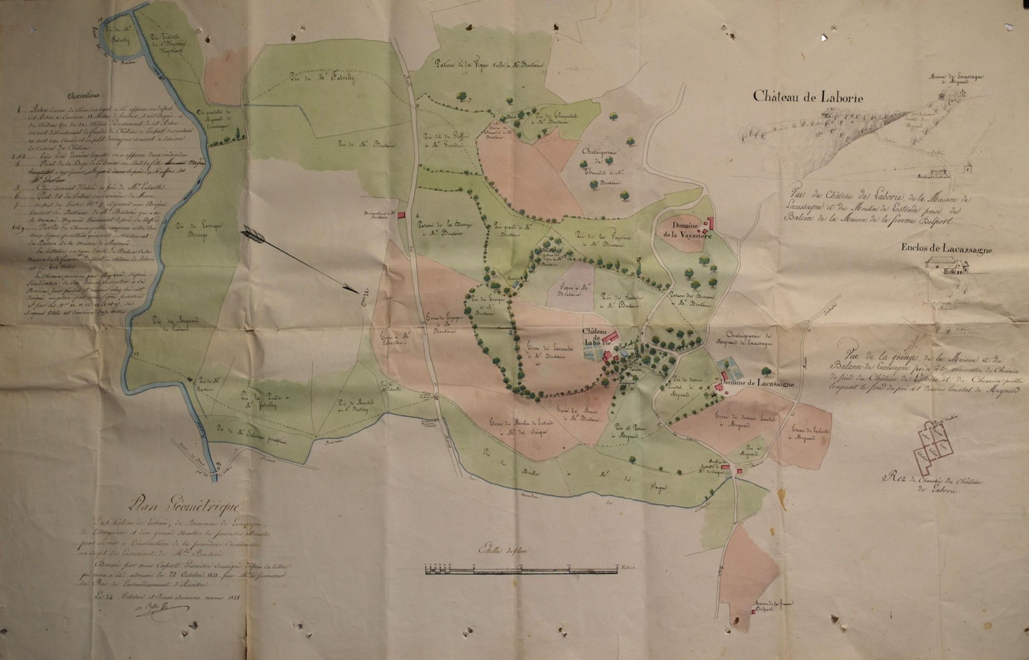 Cette mince affaire nous vaut un plan très beau et très détaillé du détail arachnéen des rigoles arrosant, depuis le ruisseau, les prés des deux domaines de Loubéjac, avec leurs bâtiments et leurs jardins.