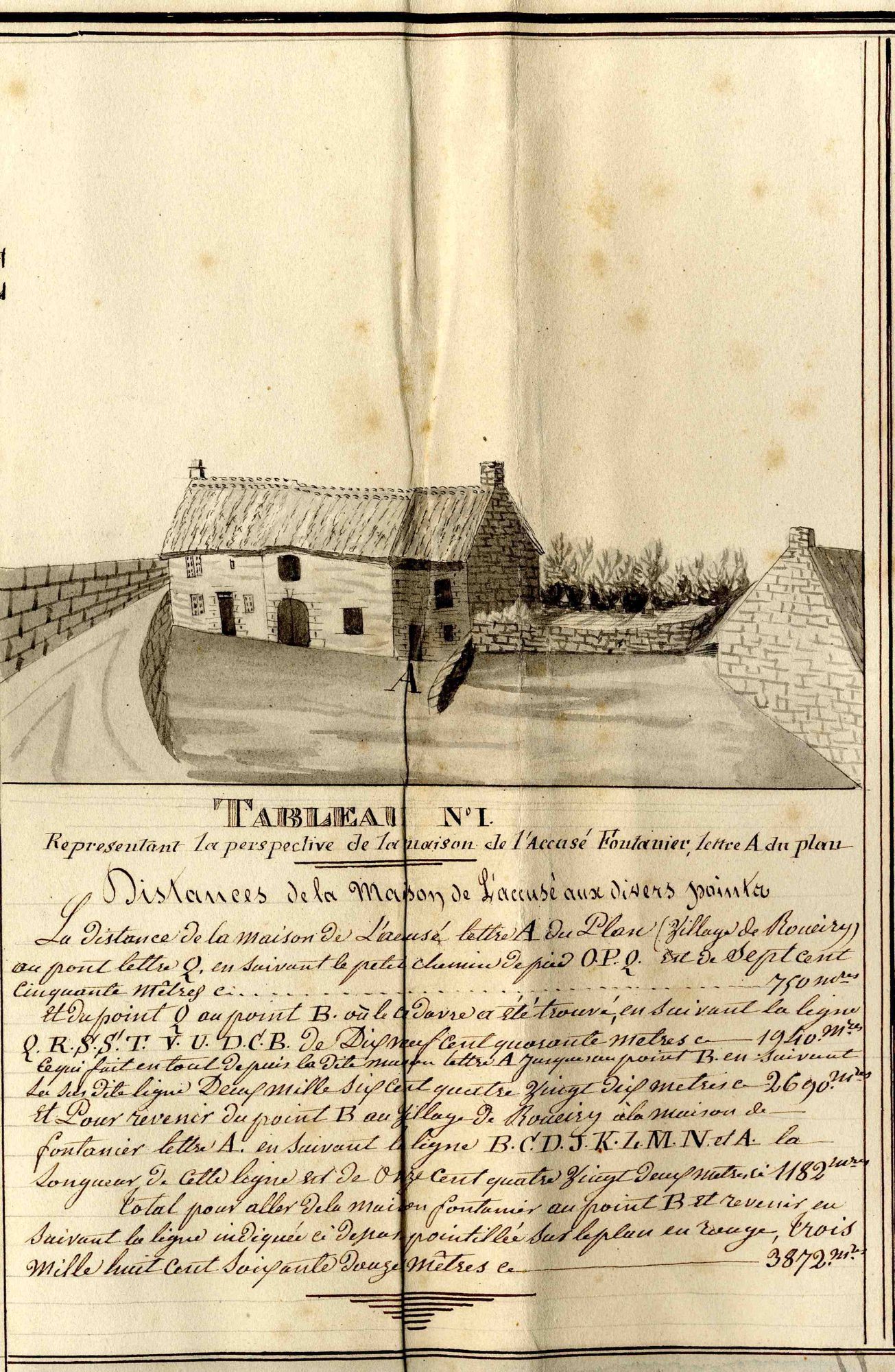 Le 28 août 1837, Jean Lagnol, maréchal-ferrant du bourg, assène un violent coup de hoyau à l'un de ses voisins, réglant ainsi un différend des plus obscurs. La blessure entraînant une impossibilité de travailler supérieure à 20 jours, le métallurgiste irascible et estropié de la main gauche est renvoyé aux assises. Lors de l'instruction, afin de convaincre le juge Marcombes de sa bonne foi, il dessine un plan des lieux, plutôt fruste, que celui-ci accepte néanmoins comme pièce à conviction. Les jurés, comme généralement dans ce genre d'affaires, font preuve de mansuétude, le condamnant à un an de prison.