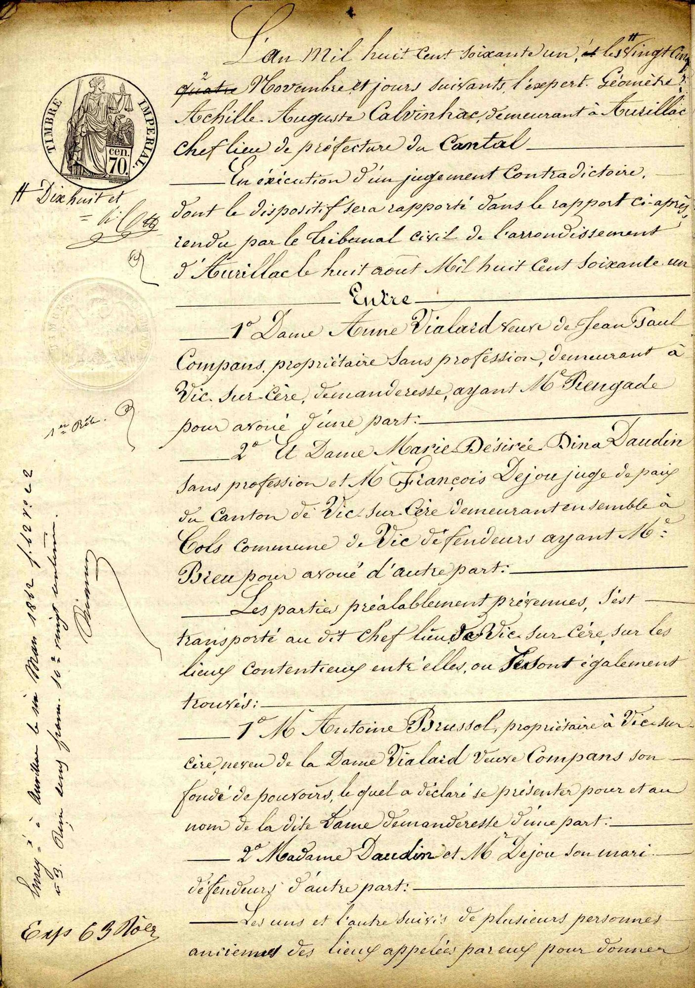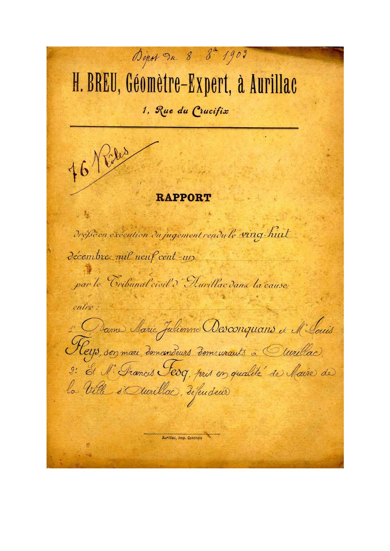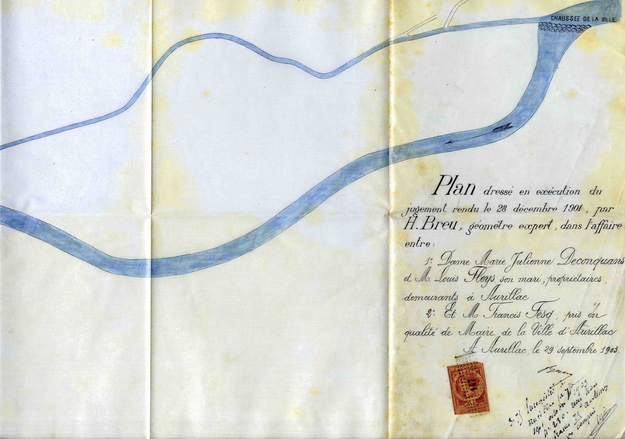 Le classement des archives du tribunal civil d’Aurillac (1800-1958), qui forment la sous-série 3 U 1, s’est achevé au printemps 2013. Elles comprennent une belle série de rapports d’experts qui comportent, à l’occasion, des plans (puis, plus tard, des photographies) souvent d’excellente qualité.