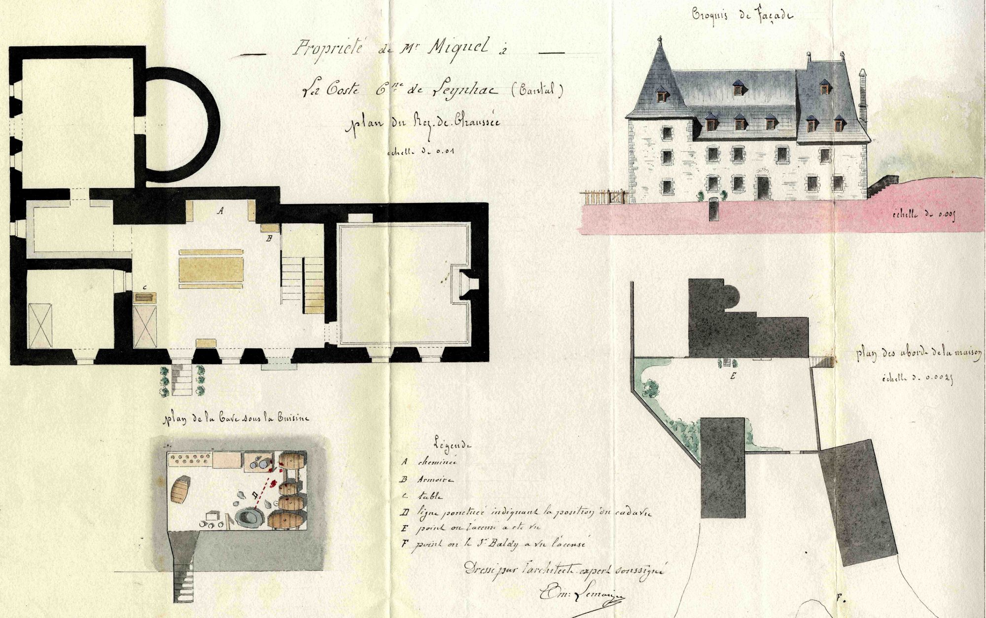 Les plans et le dessin de la façade ont été levés avec soin et élégance par Emile Lemaigre, architecte ici expert, qui restaura et reconstruisit bon nombre de châteaux du Cantal, au point qu’on pourrait l’appeler le Viollet-le-Duc des montagnes d’Auvergne.