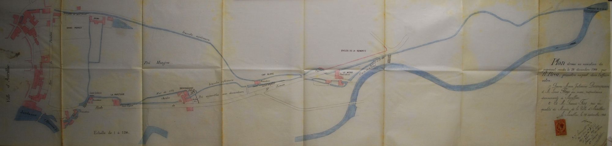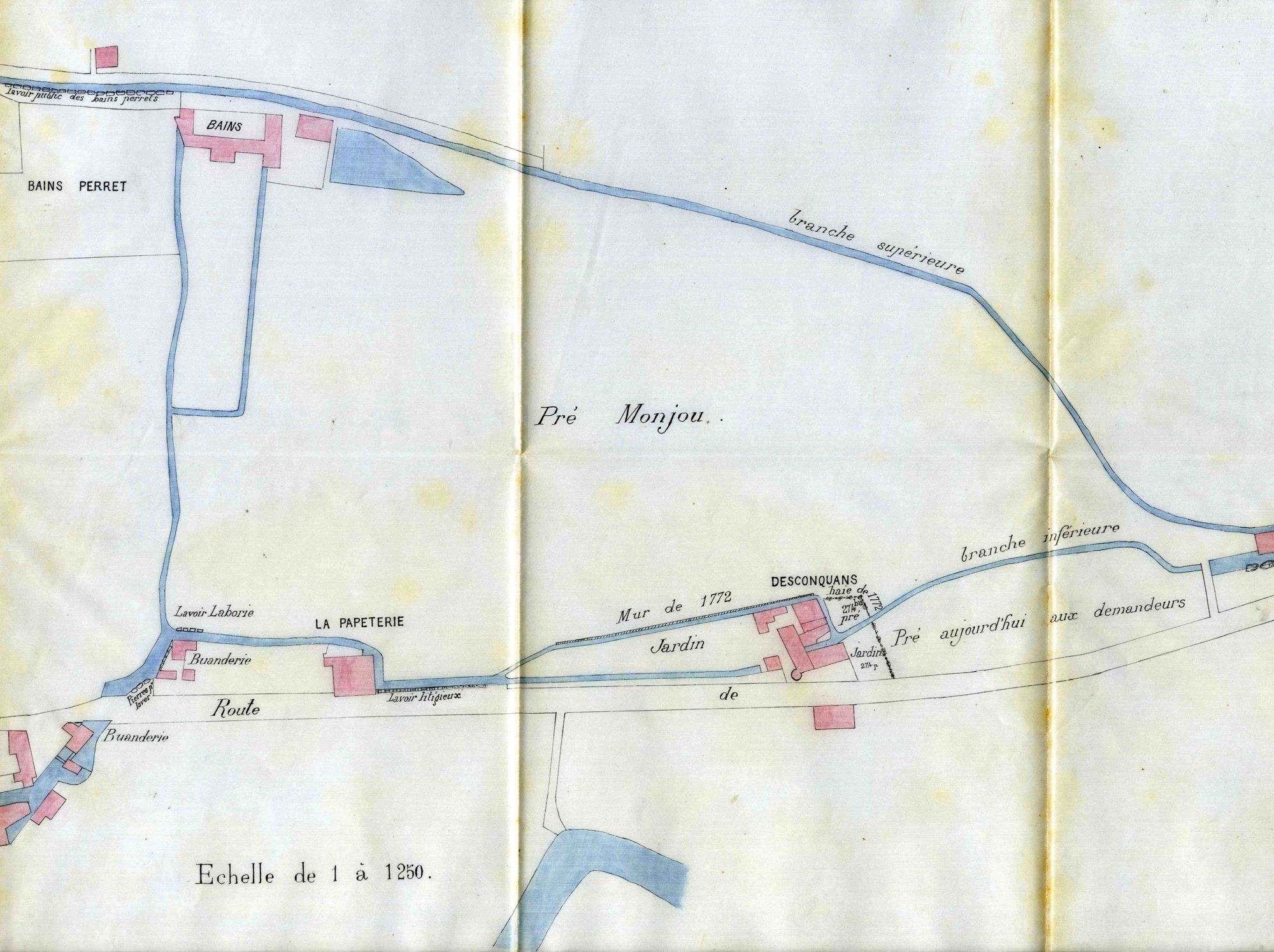 Mme Deconquans, épouse de Louis Fleys, est propriétaire du moulin Deconquans (anciennement Degary) sur le canal, au bord de la route de Saint-Simon. La ville a aménagé un lavoir en amont, qui diminue la qualité et la quantié (du moins le débit) de l’eau, mettant le moulin au chômage. Le rapport de l’expert Breu est l’une des pièces de l’interminable affaire dite des usiniers, qui opposa les propriétaires des moulins à la ville voici plus d’un siècle.