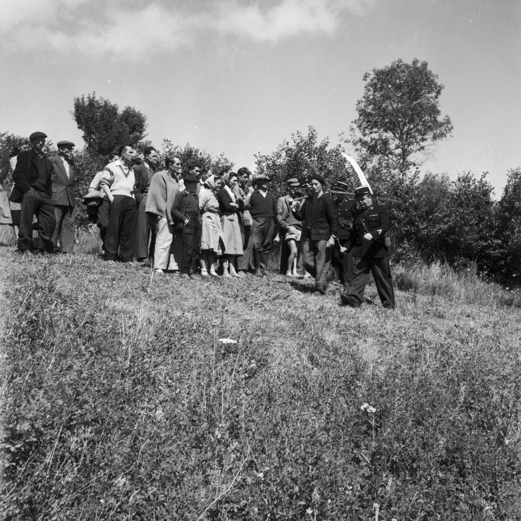 Les photographies du journal La Montagne, en cours de numérisation et de mise en ligne, en vertu d’une convention liant le Conseil général au groupe Centre-France, permettent de suivre la reconstitution dans le pré de fauche.