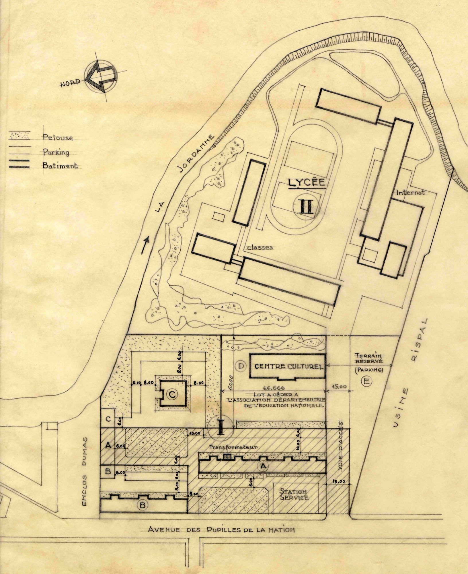 La parcelle II, en vertu du « plan d’aménagement d’Aurillac » était destinée à un lycée de jeunes filles ; c’est aujourd’hui le collège de la Jordanne.
