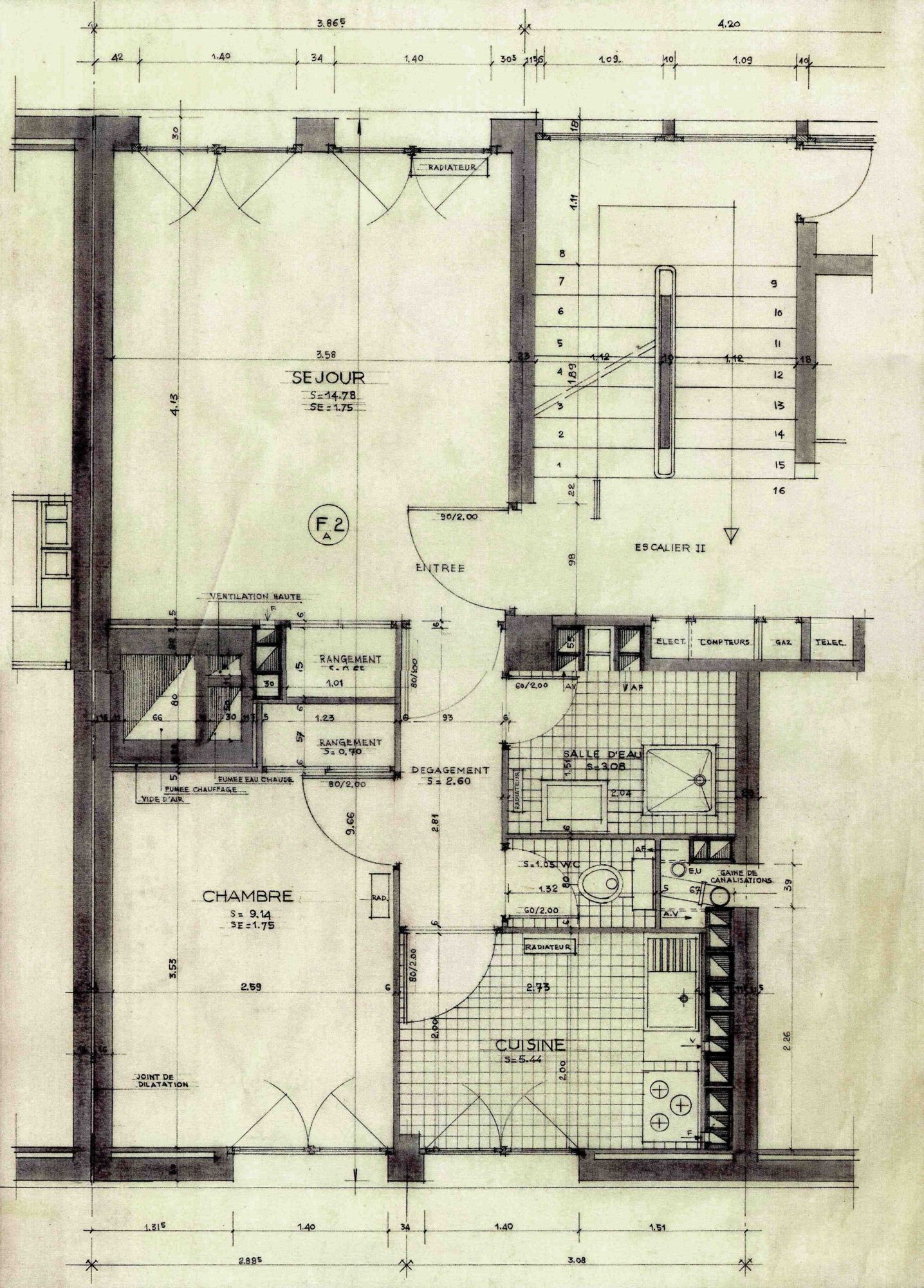 Plan d’un appartement F 2 du bâtiment A