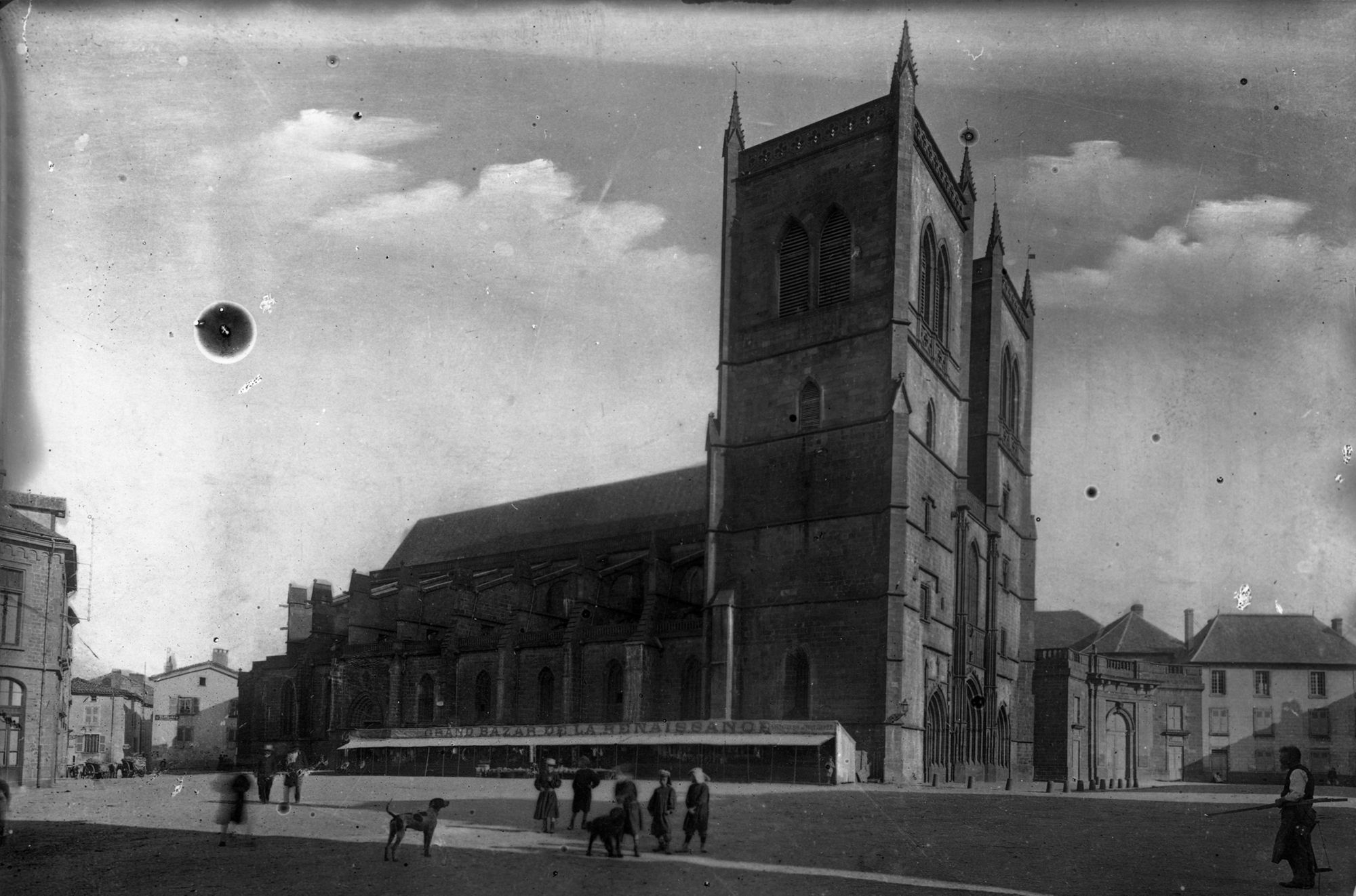 Plaque de verre retouchée : le ciel a été badigeonné afin de le rendre uniformément blanc.