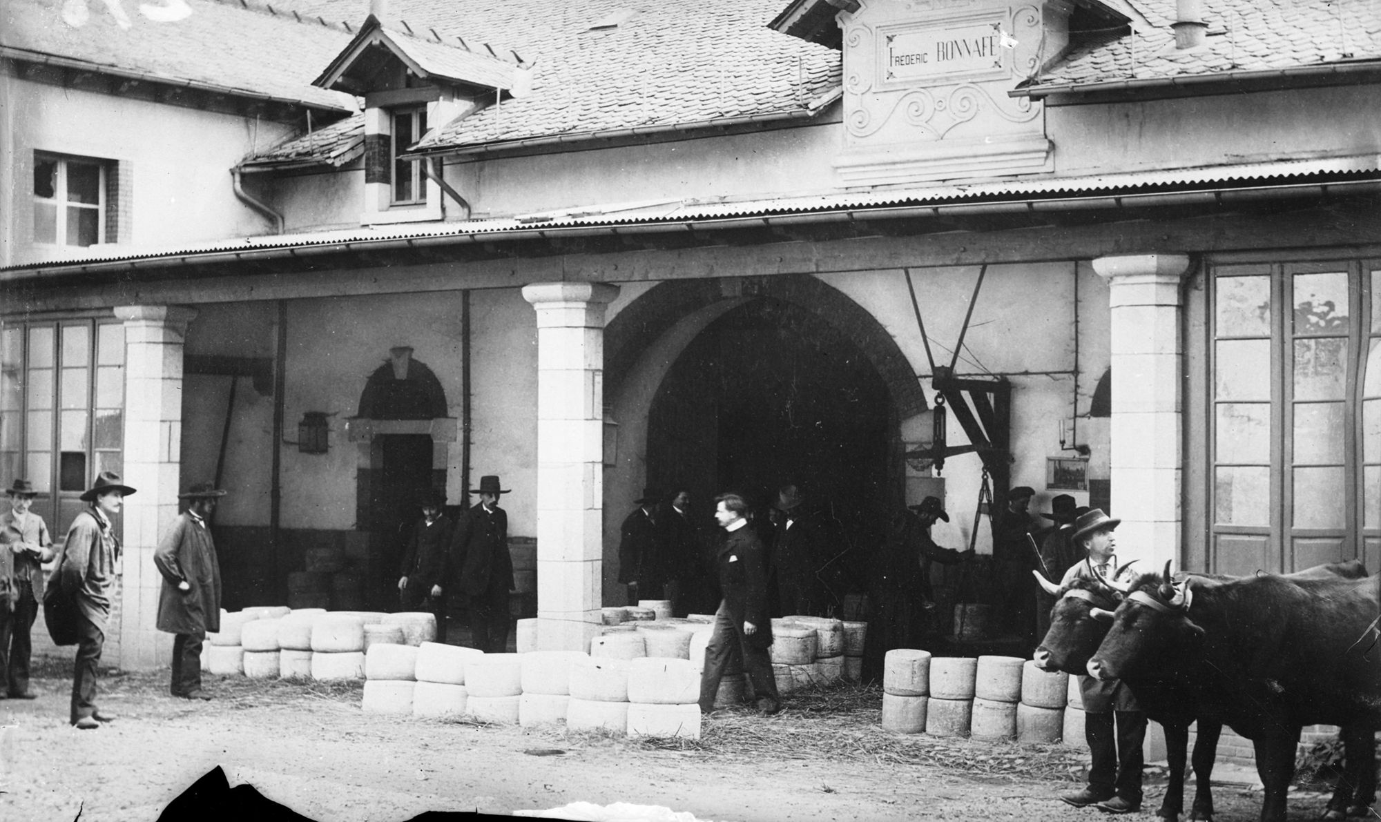 A l’arrière-plan, on pèse les fourmes. Cet entrepôt est situé dans une arrière-cour, près de l’ancien cinéma Le Normandy.