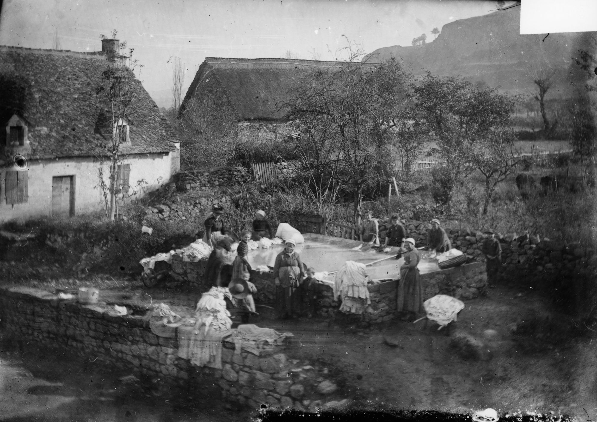 Le linge est transporté dans des brouettes ou des paniers. Lieu de rencontre et de discussion, le lavoir revêt un rôle social important pour les femmes.