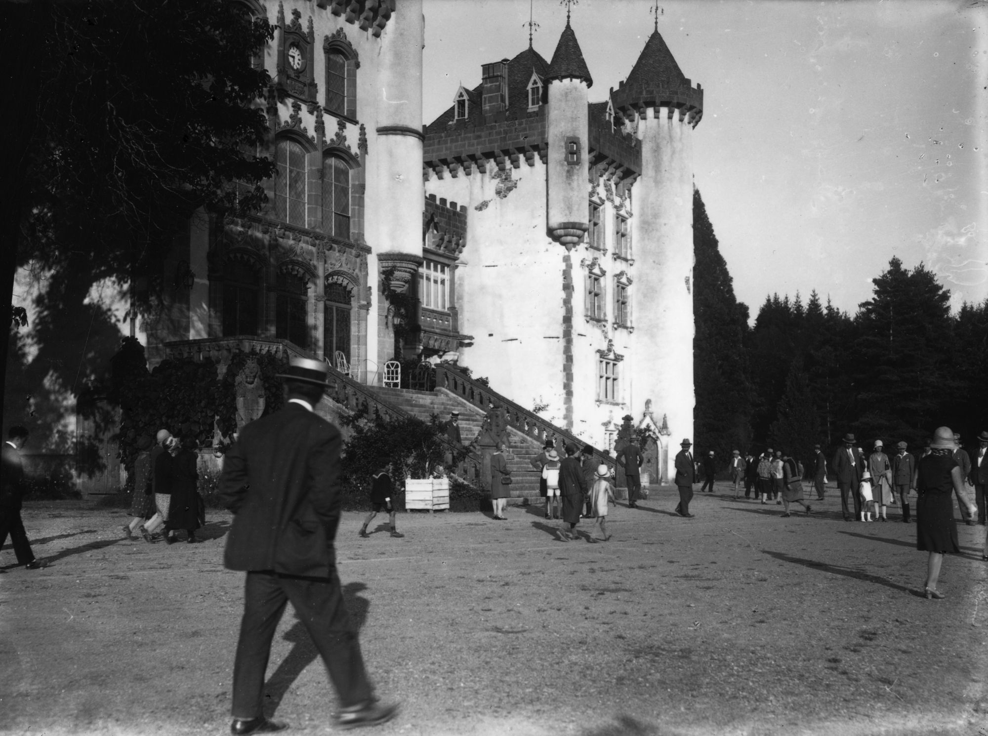 Cette photographie semble avoir été prise le 8 septembre 1929, à l'occasion de la pose d'une plaque commémorative à la mémoire du duc de la Salle de Rochemaure par l'Escolo Oubernhato. Le duc (1856-1915), personnage haut en couleurs, avait édifié ce château de style troubadour. Il sera détruit six ans plus tard par un incendie provoqué par la foudre.