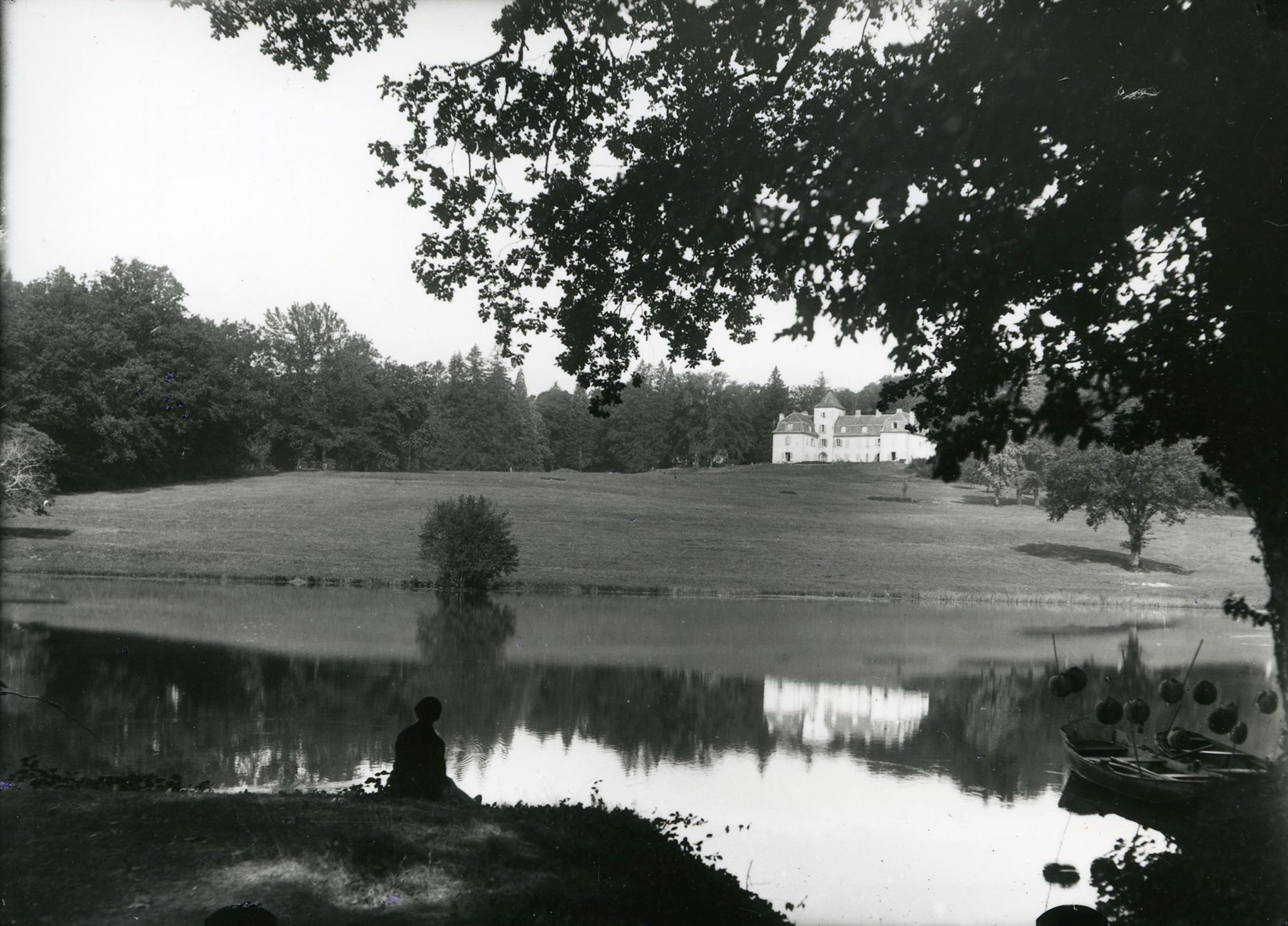 Les barques au premier plan à droite laissent supposer que les châtelains apprécient les balades sur l’eau de nuit, à la lueur des lampions.