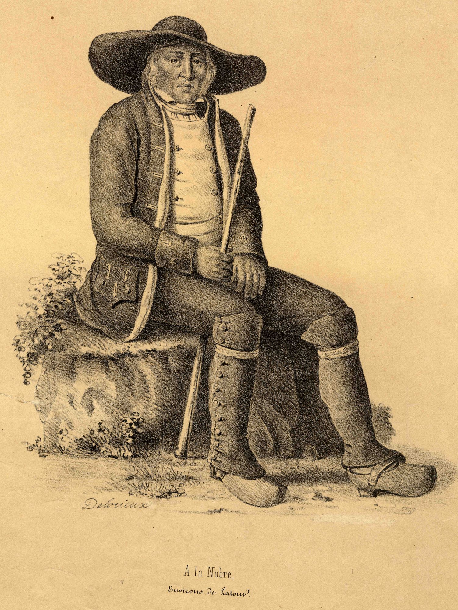 Cette lithographie fait partie d’une série de planches consacrées aux costumes « traditionnels » du sud-ouest du Puy-de-Dôme, autour de la Tour-d’Auvergne, mais qui déborde ici sur l’Artense cantalien. Ce type de planche lithographiée a contribué à répandre, mais en même temps à figer, l’idée que l’on se fait du « costume traditionnel », tel qu’il était porté dans le second quart du XIXe siècle. Sur la foi de ces images et de leurs légendes, on a parfois cru que ces costumes pittoresques venaient du fond des âges, alors qu’ils sont bien de leur siècle.