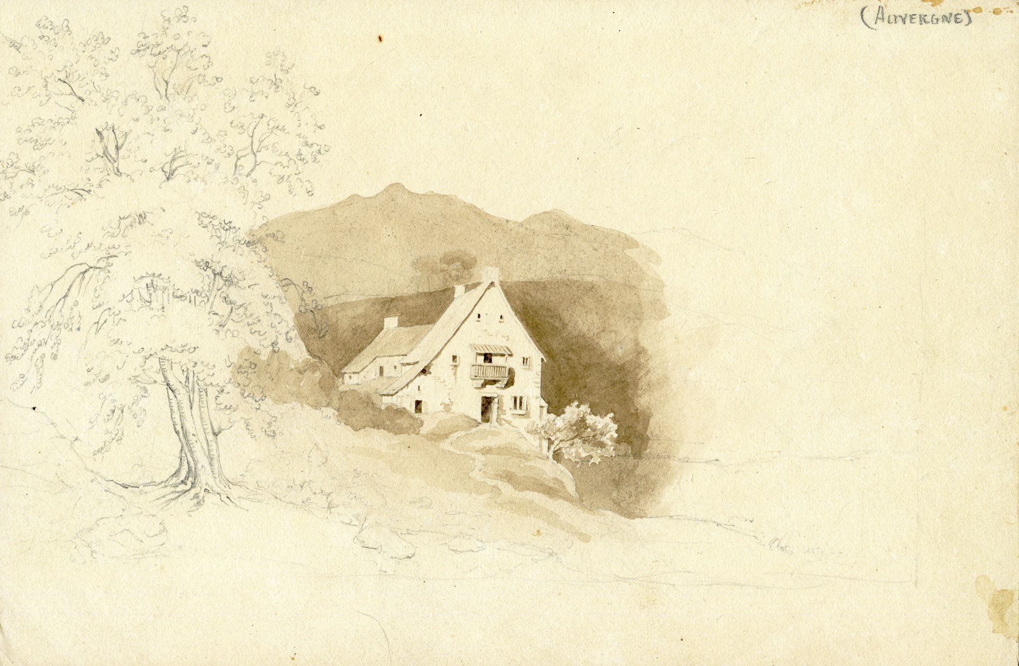 Cette aquarelle agréable, qui peut être située dans le Puy-de-Dôme ou ses marges immédiates, montre que les goûts d’Alphonse Aymar n’allaient pas exclusivement vers l’image documentaire, mais qu’il était sensible aux qualités artistiques. On ressent moins cet appétit dans la collection Delmas.
