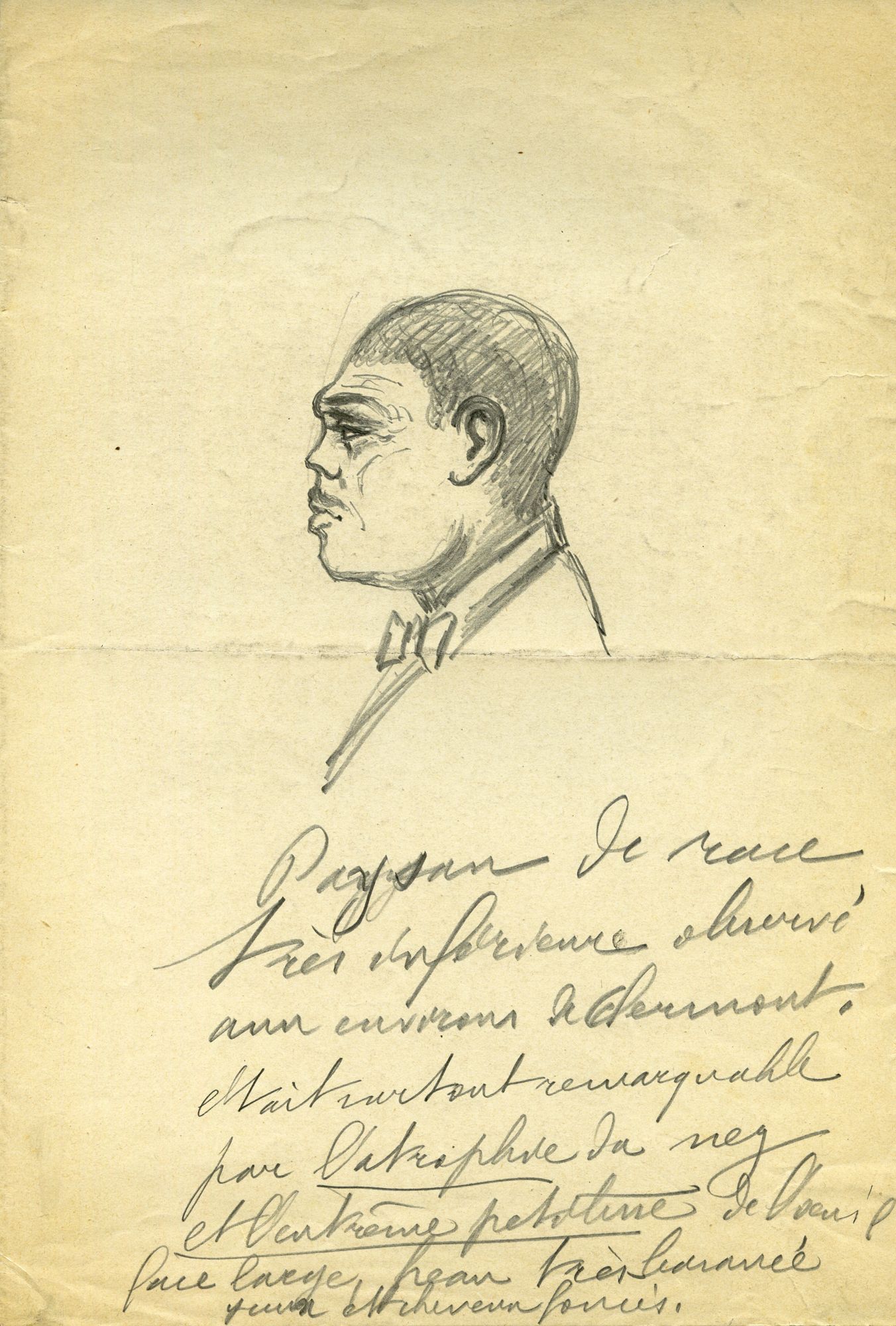Il ne s’agit pas ici de bovins, mais d’être humains qu’Anatole Roujou (1841-1904), naturaliste, géologue, docteur ès-sciences et chargé de cours à la faculté de Clermont-Ferrand (1874-1888), a dessinés de face et de profil. Les traits des Auvergnats y sont manifestement outrés, pour les faire rentrer dans sa démoniaque taxinomie raciale (australoïde, mongoloïde, sémitique, aryen ou indo-germain). D’après Roujou, l’appartenance et surtout le mélange des races « inférieures » produit immanquablement le crime dans certaines familles ou certaines communes.