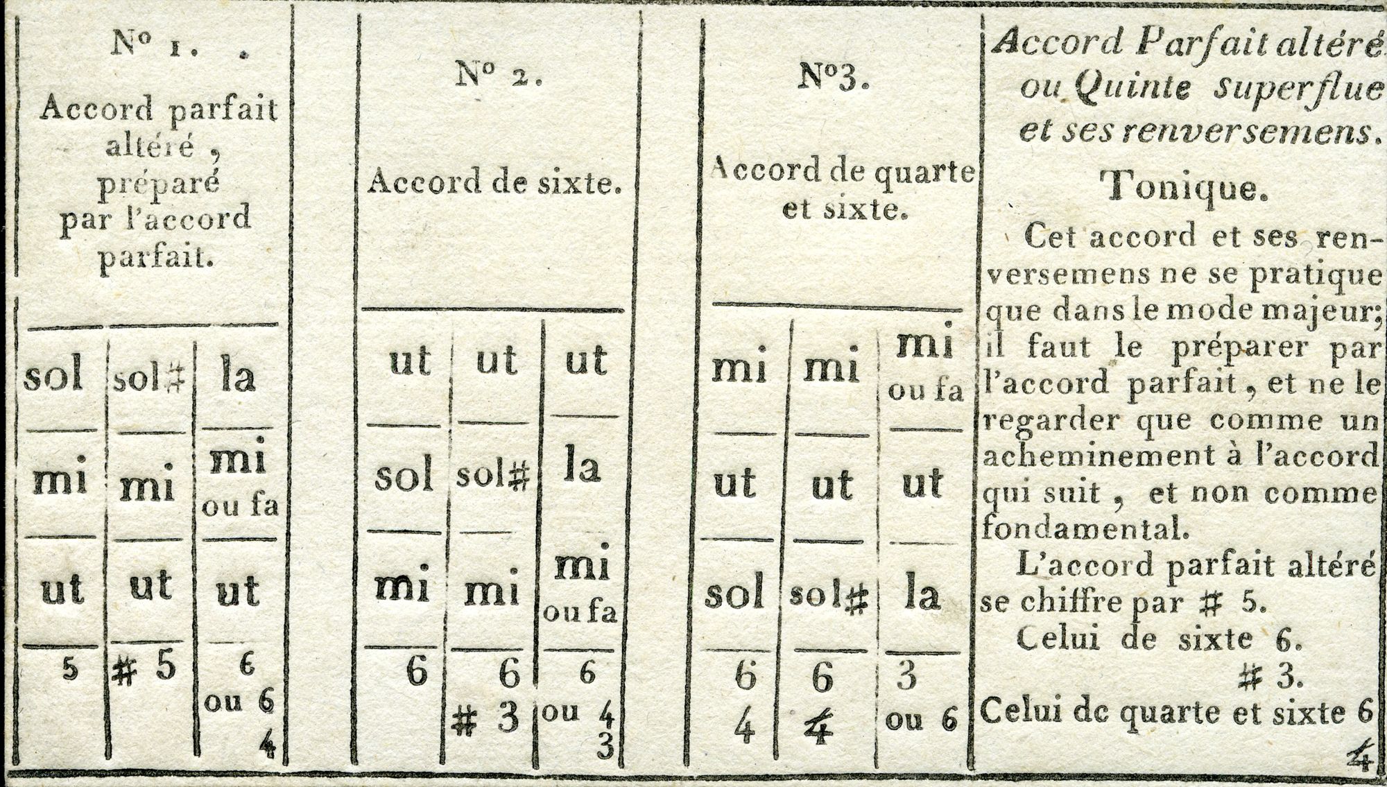 En combinant les cartes deux à deux, suivant les indications données par la notice, on obtient tous les genres d’accords (principaux, renversements, composés), qu’ils soient consonants (« formés par trois notes ») ou dissonants (formés par quatre ou cinq notes).