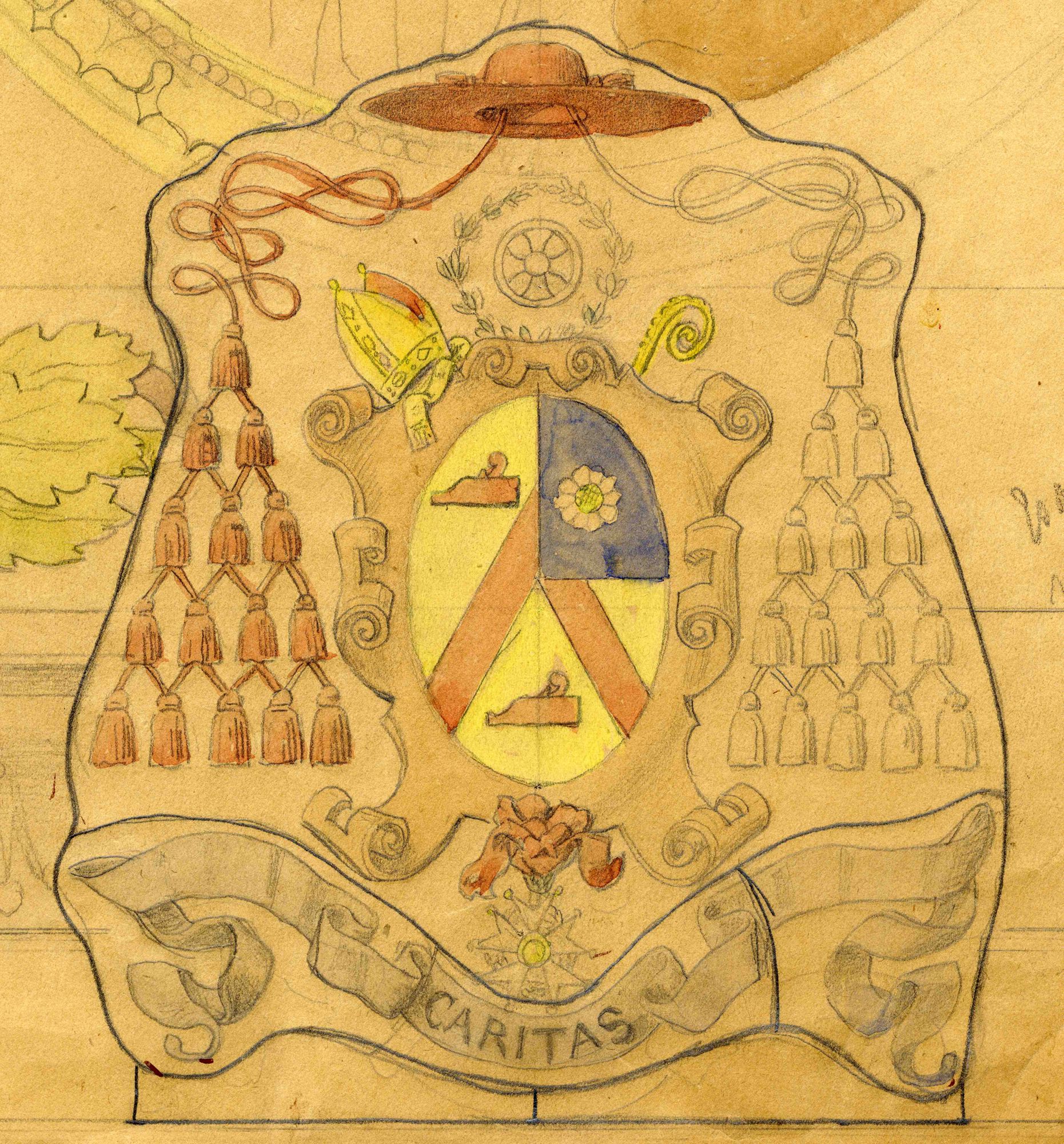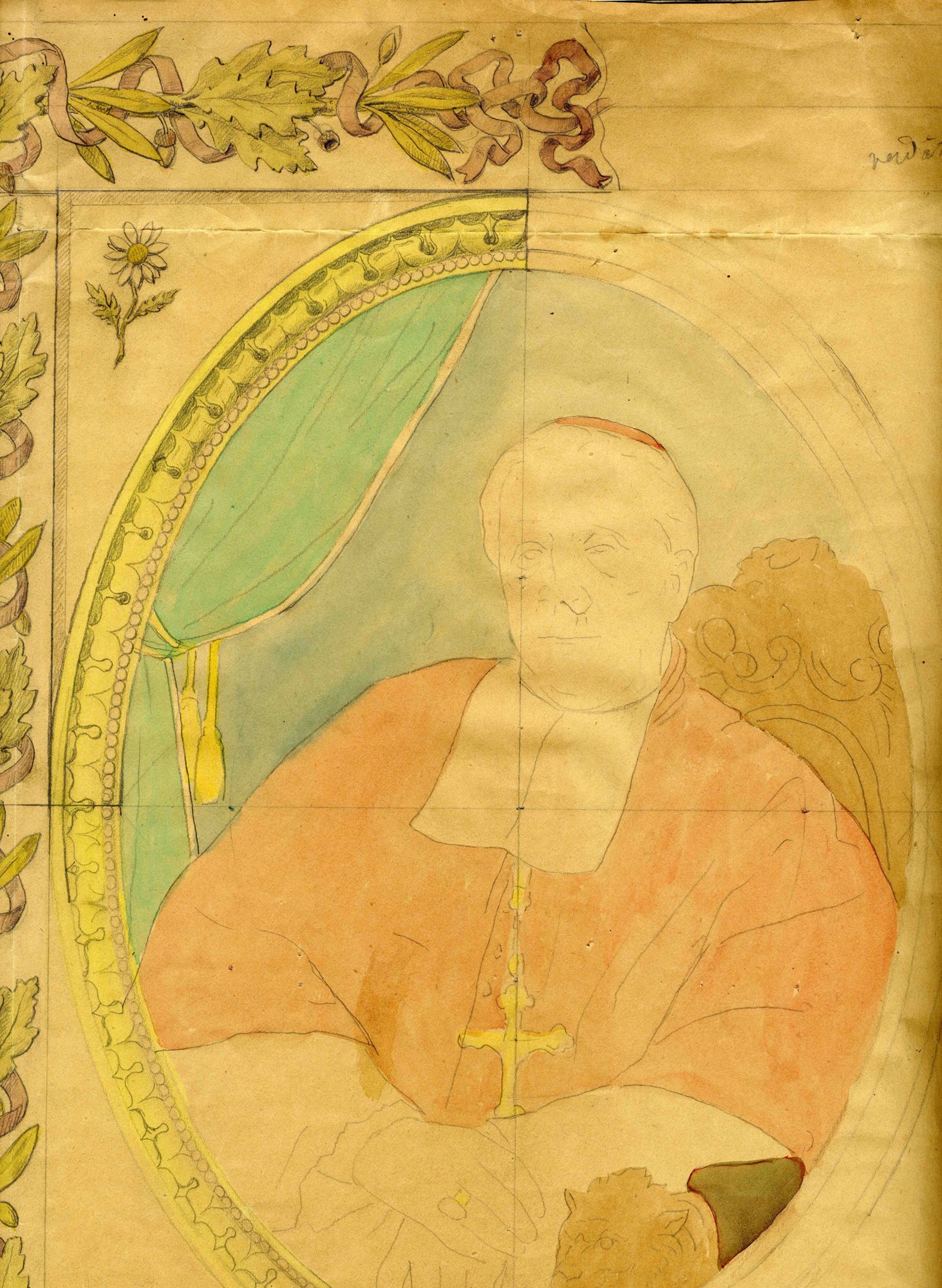 Portrait et armoiries de Mgr Boyer : esquisses de vitrail par Antoine Montadat