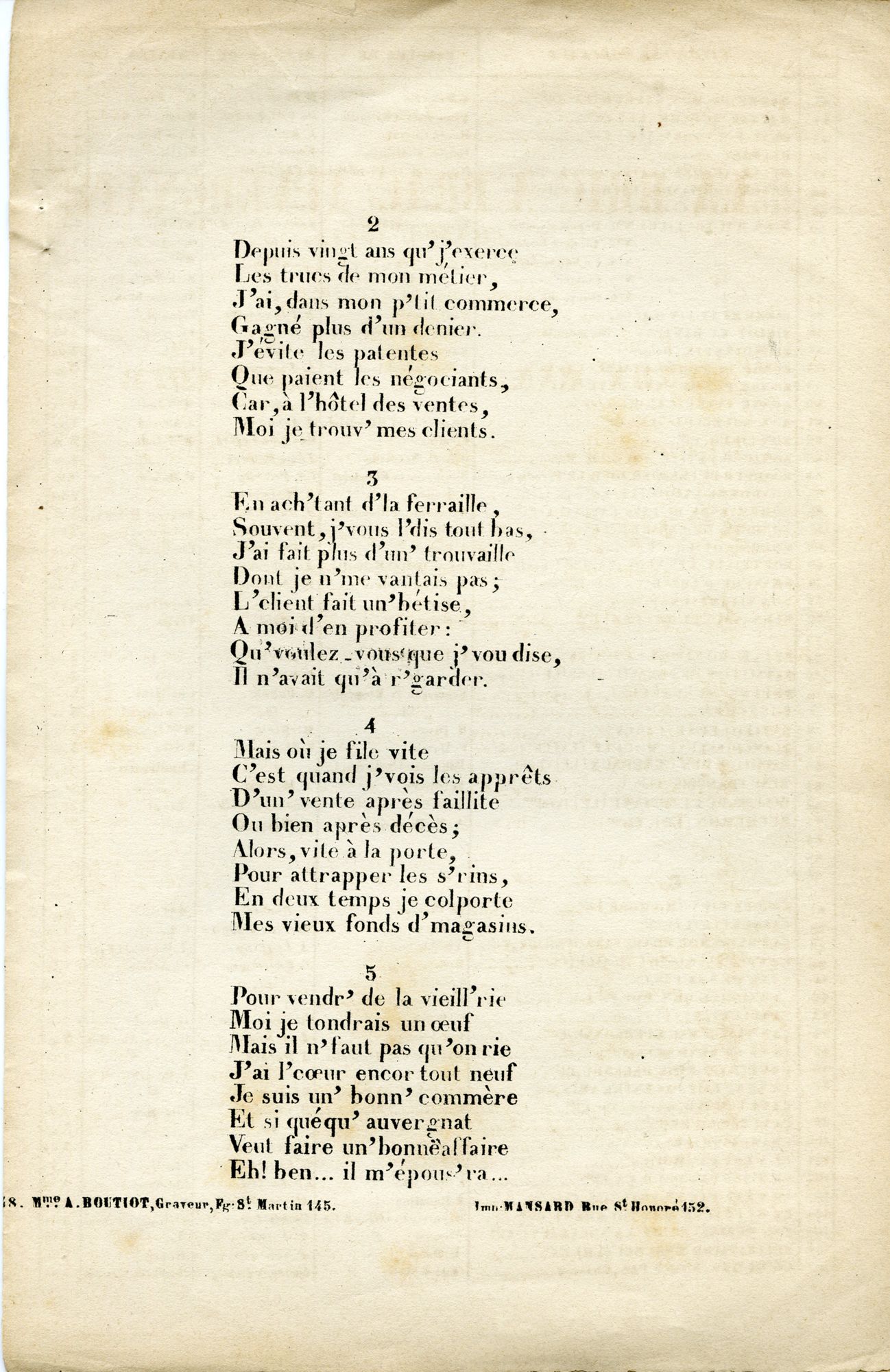 La bric à brac auvergnate. Chansonnette