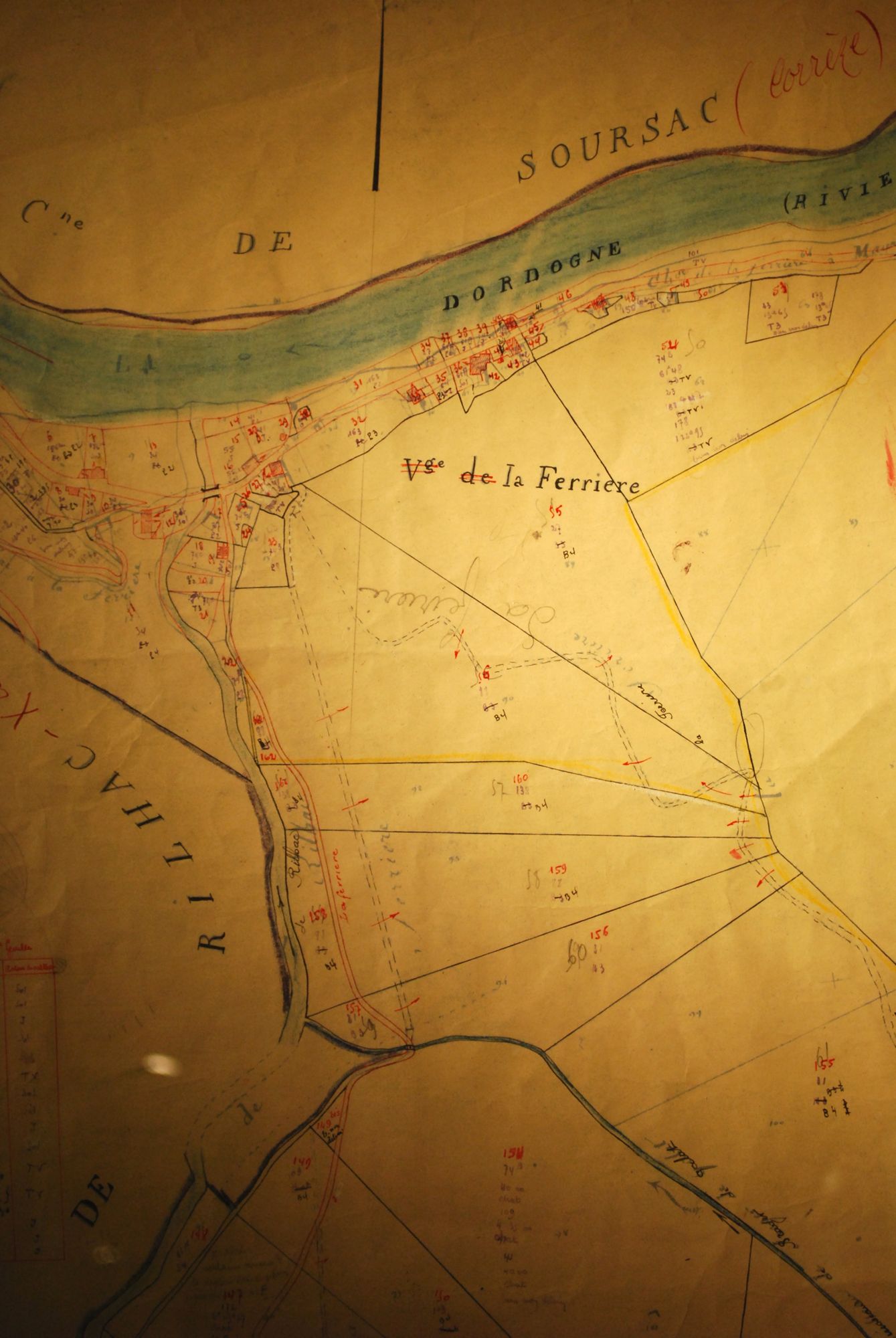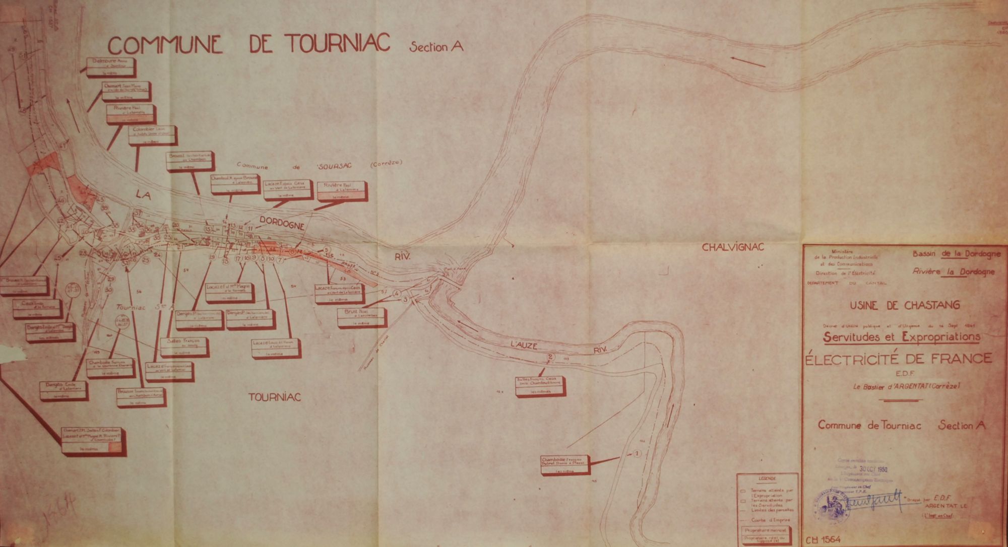 Les maisons situées sur le bord du chemin longeant la Dordogne ont toutes été détruites en 1951, pour mieux être englouties. Les maisons et biens de la famille Rivière figurent sur le tableau des expropriations prévues.