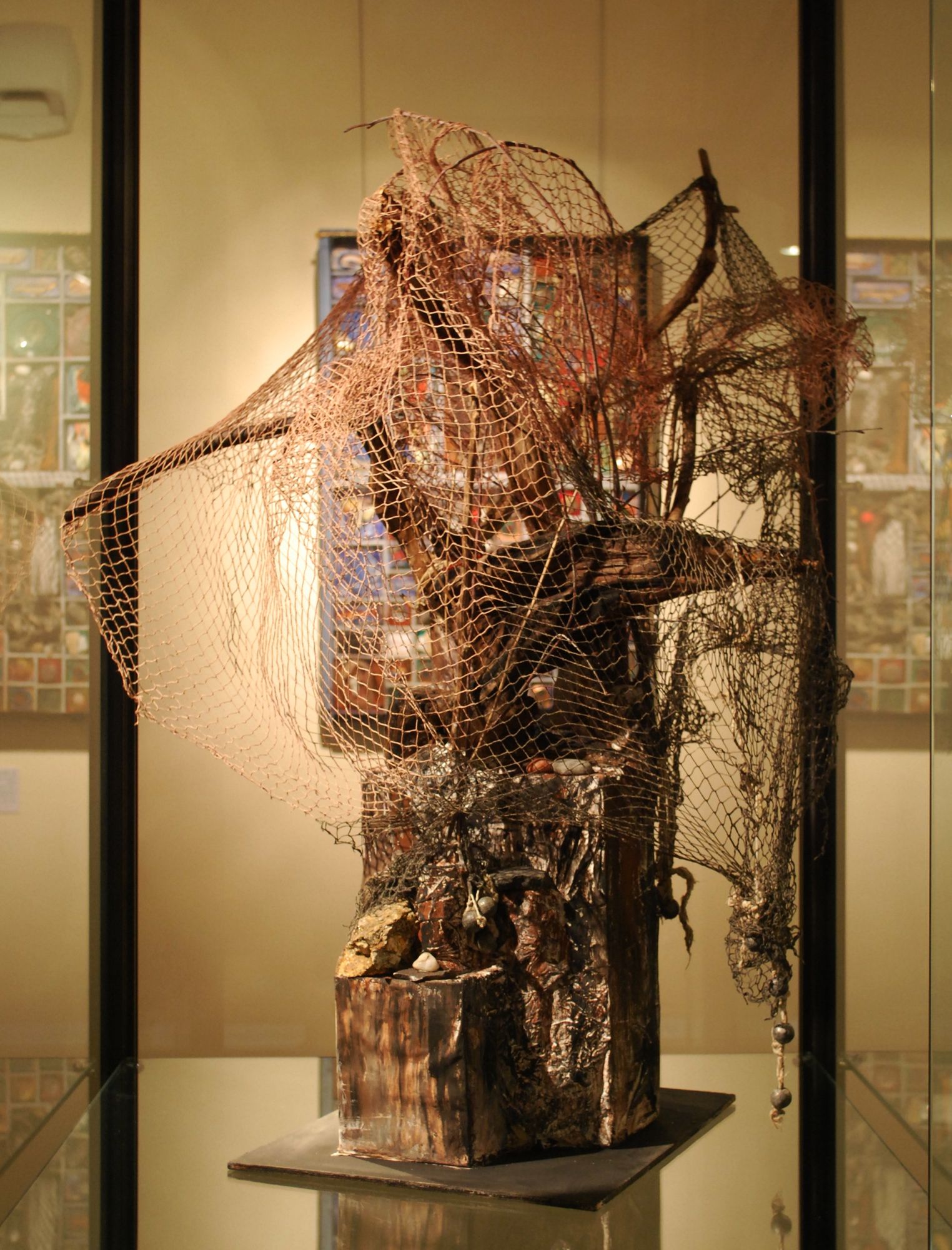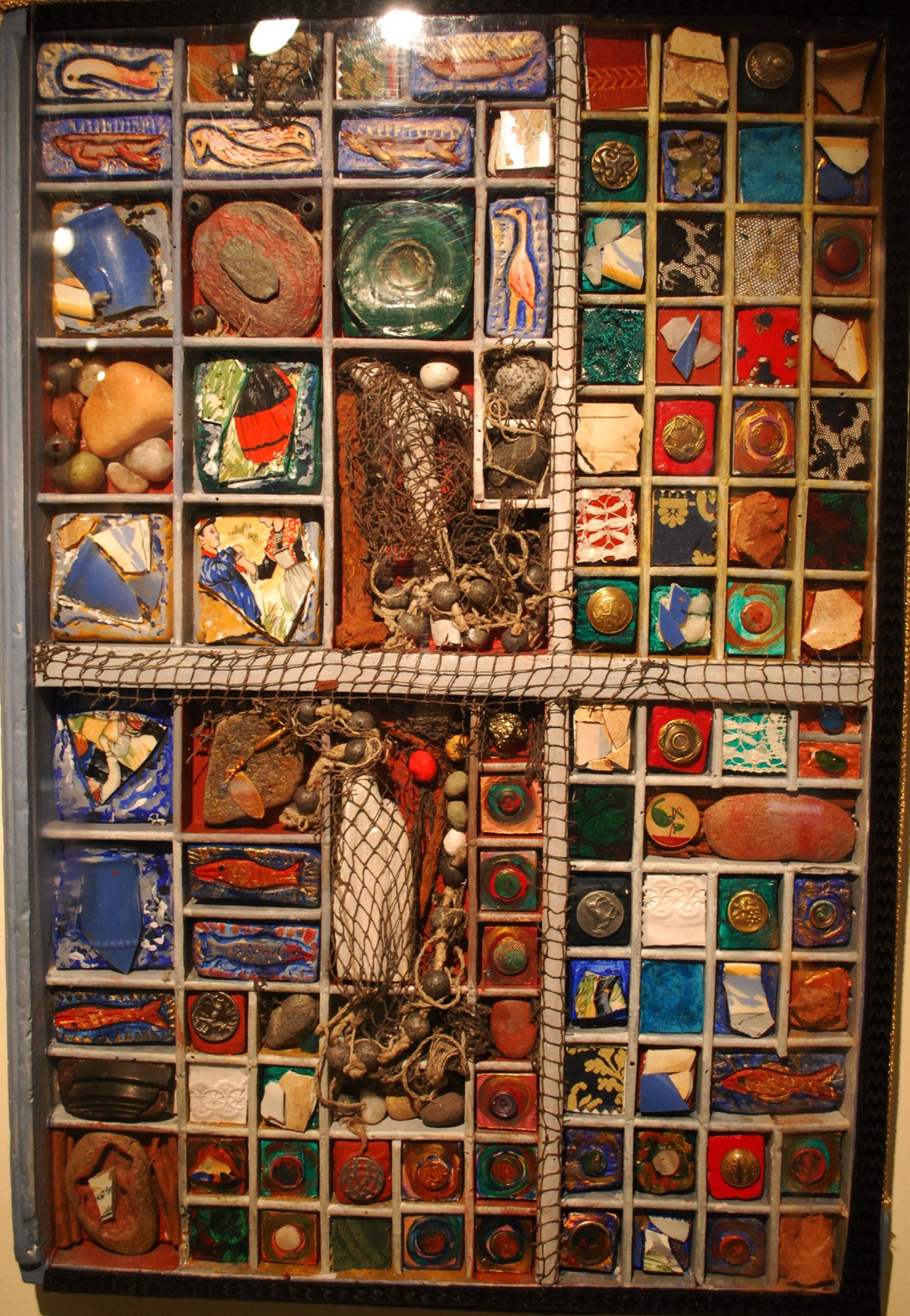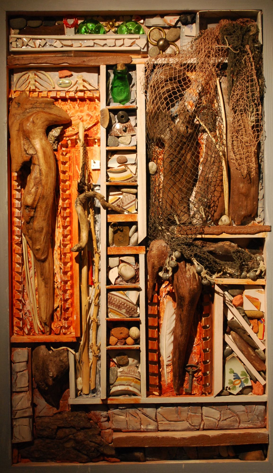 51 x 42 ; casier, carton plume, bois, acrylique, épaves