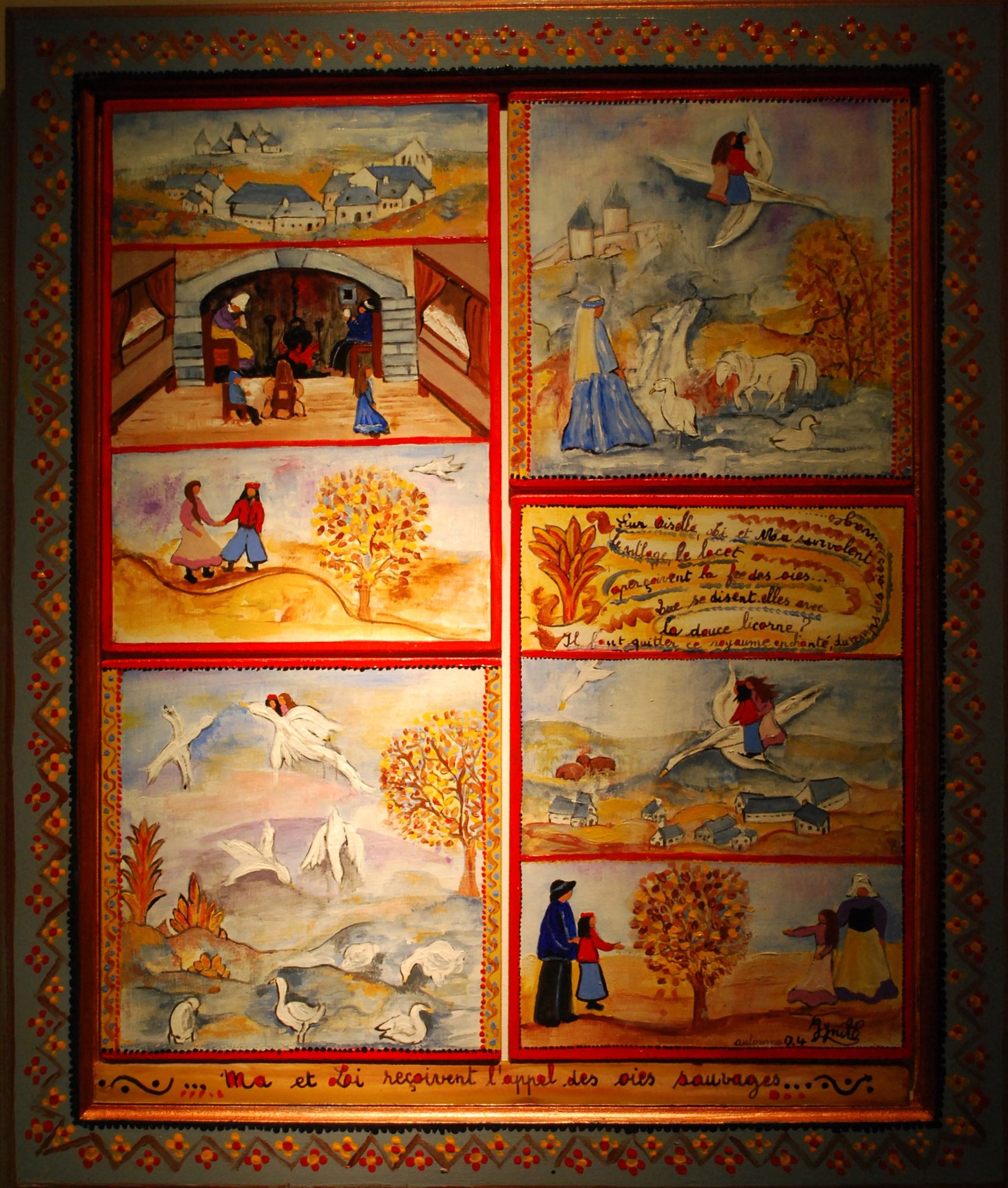Nils Holgersson, le petit garçon imaginé par Selma Lagerlöf, survole la vallée de la Dordogne à cheval sur son oie, durant son merveilleux voyage. Ainsi rêve la petite fille, qui voit dans les animaux qui passent, lors de leur migration, au-dessus de la Dordogne, l’oiseau de la conteuse suédoise venue pour un détour jusqu’à son propre ciel.