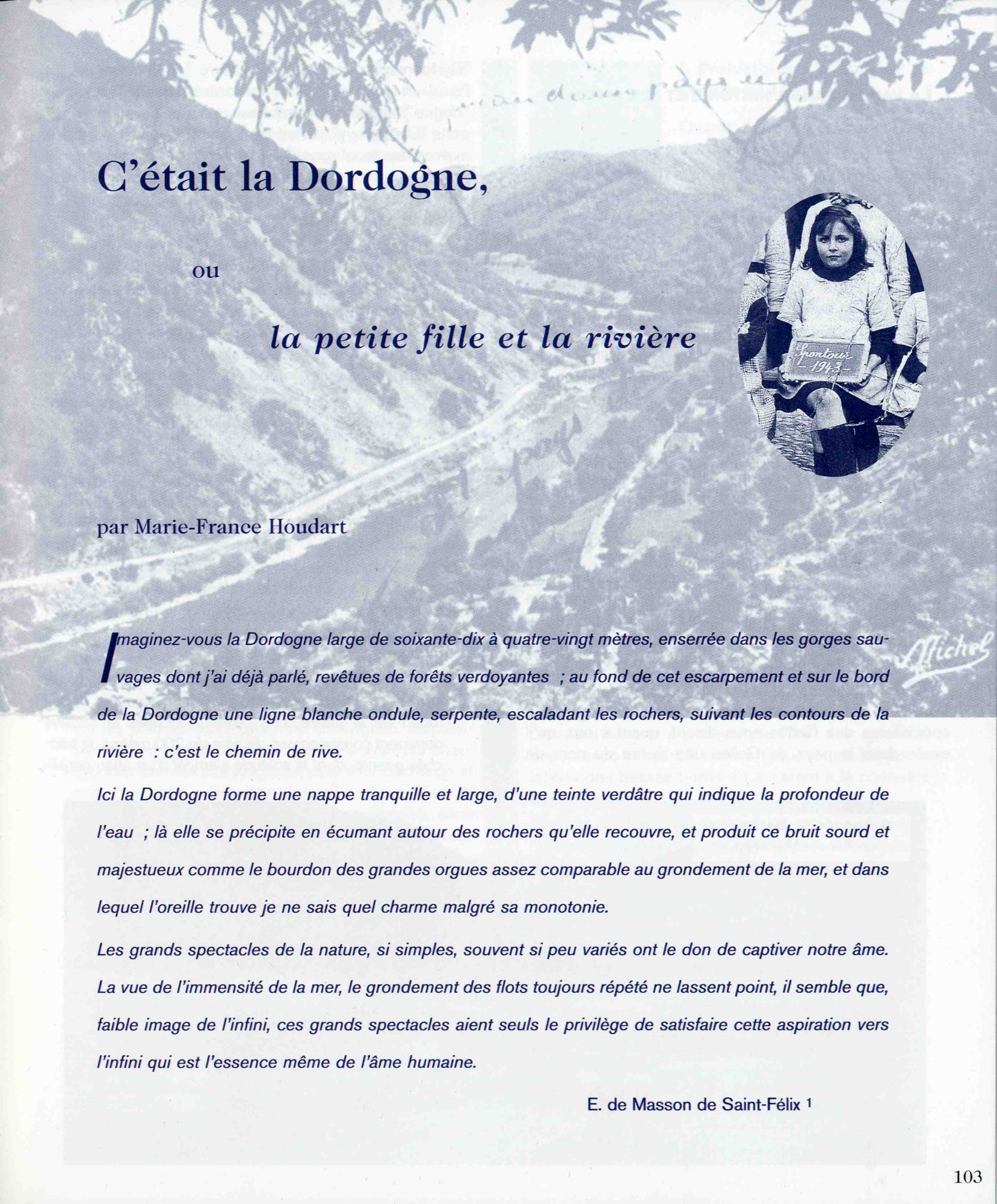 « C’était un village niché sur la rive gauche de la Dordogne, dans son écrin couleur d’émeraude. Les souvenirs, pêle-mêle, viennent à moi ».