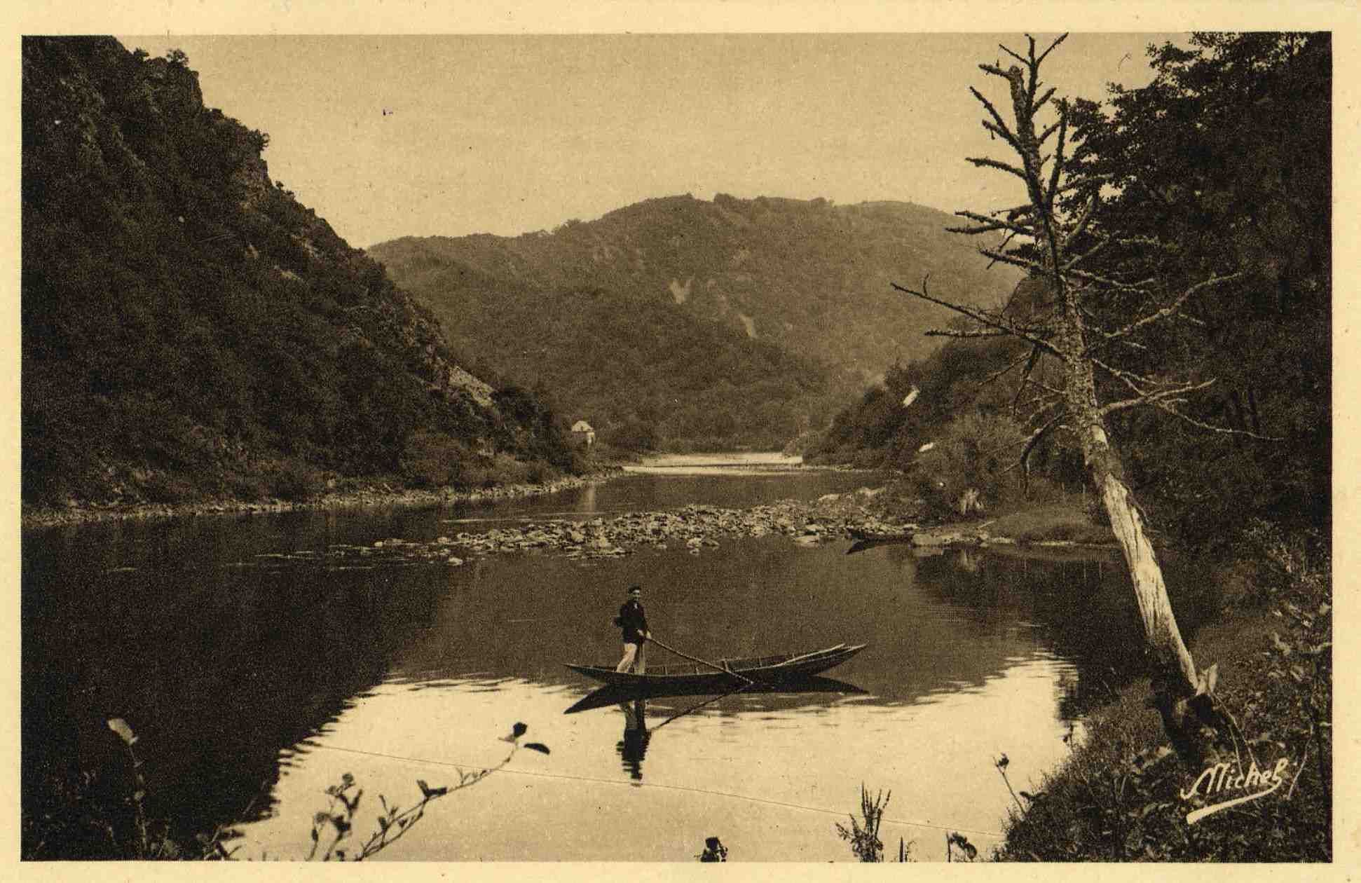 Sur les bords de la Dordogne, l’on vivait heureux ; chacun faisait sa besogne d’un cœur généreux. On pêche à l’épervier, on pêche à la ligne ; les anguilles feront une bonne matelote à l’auberge. Les enfants qui jouent dans le sable ne perdent rien de la scène.