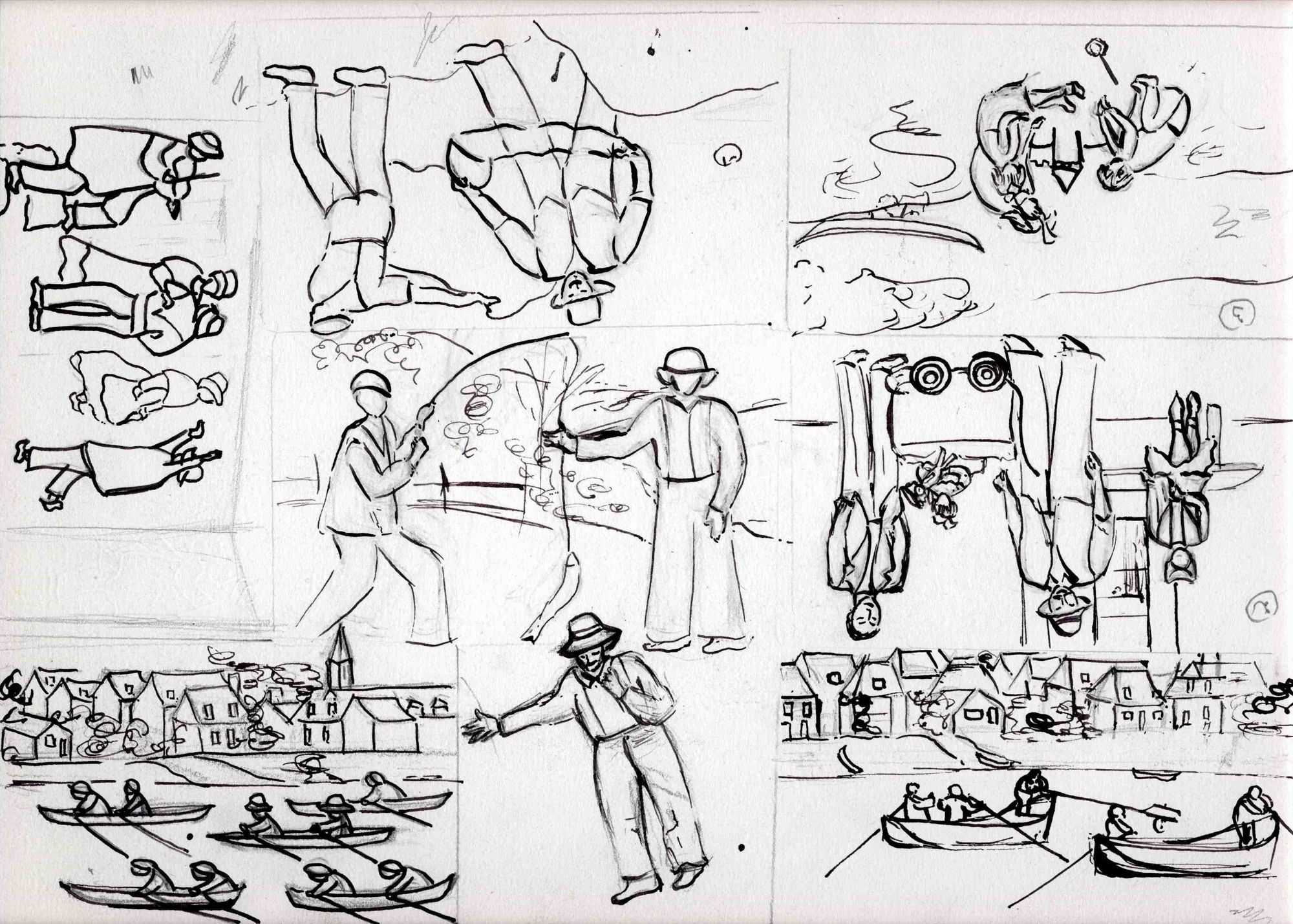 Esquisses au crayon et à l’encre sur papier