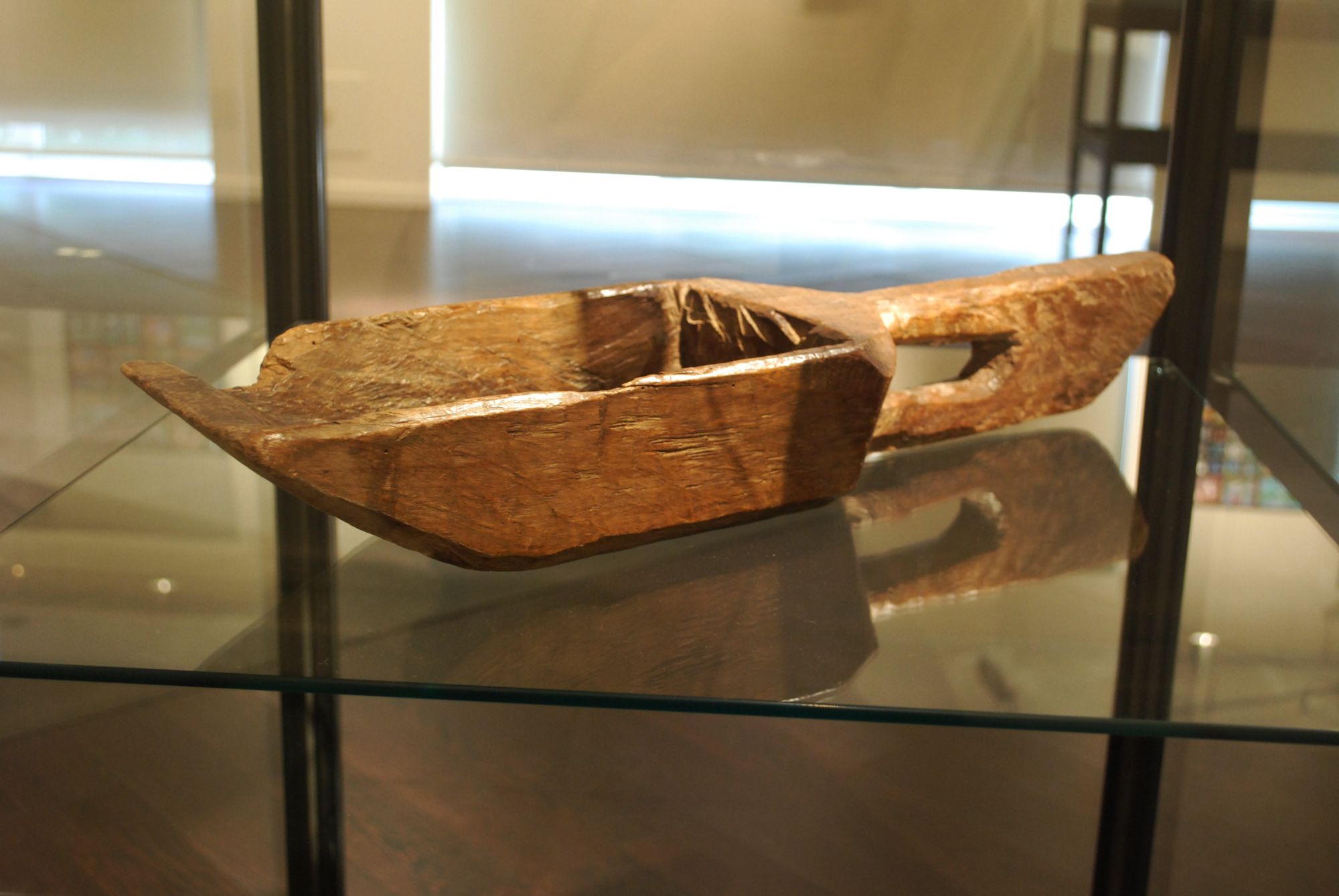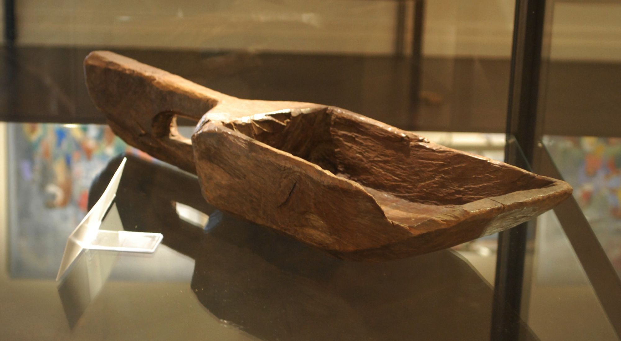 Les gabarres prenaient souvent l’eau dans les rapides, et il fallait écoper avec ce genre de pelle. Celle-ci a appartenu au grand-père de Ginette Aubert.