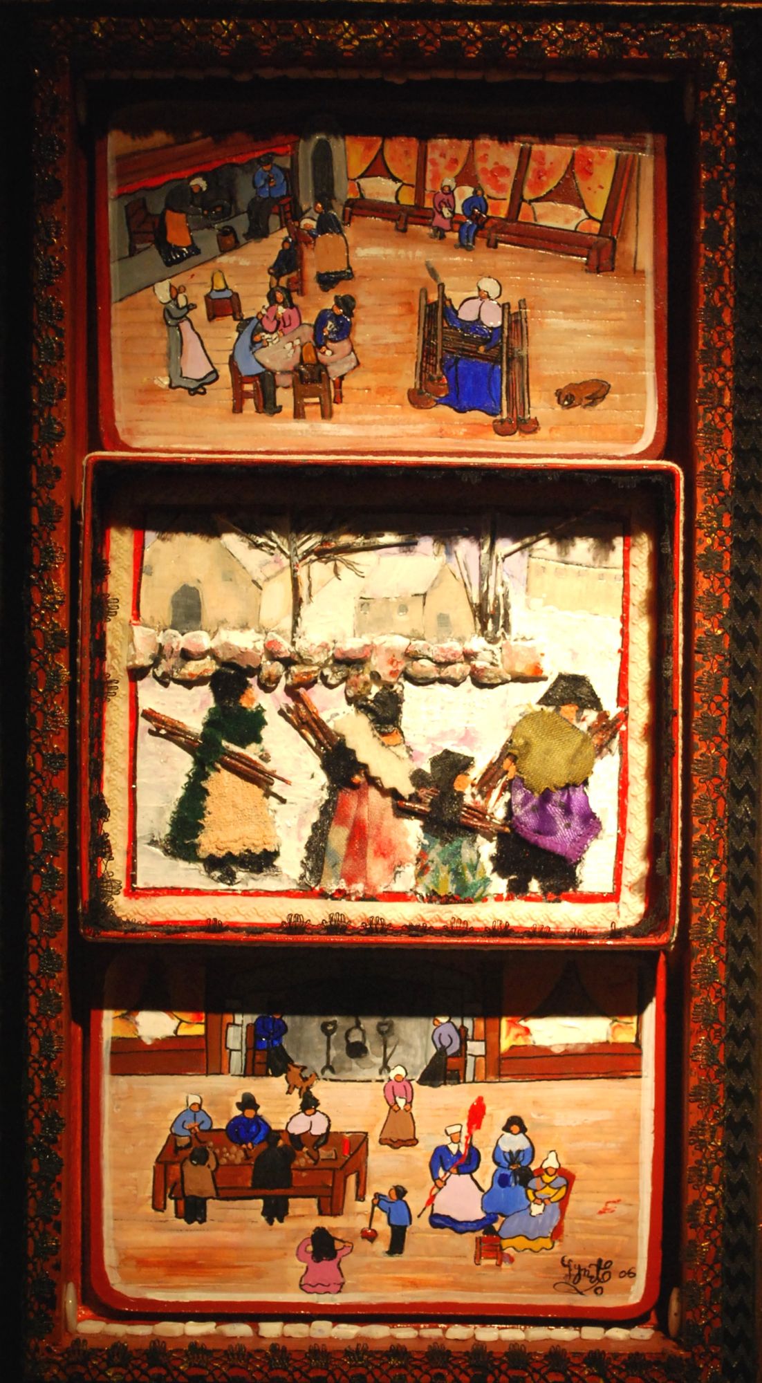 On ne se hasarde hors de la maison, l’hiver, que pour aller chercher des fagots qui brûleront dans le foyer, et permettront à tous de vaquer à leurs occupations : cuisine, jeux de cartes, filage, couture, jeux des enfants.
