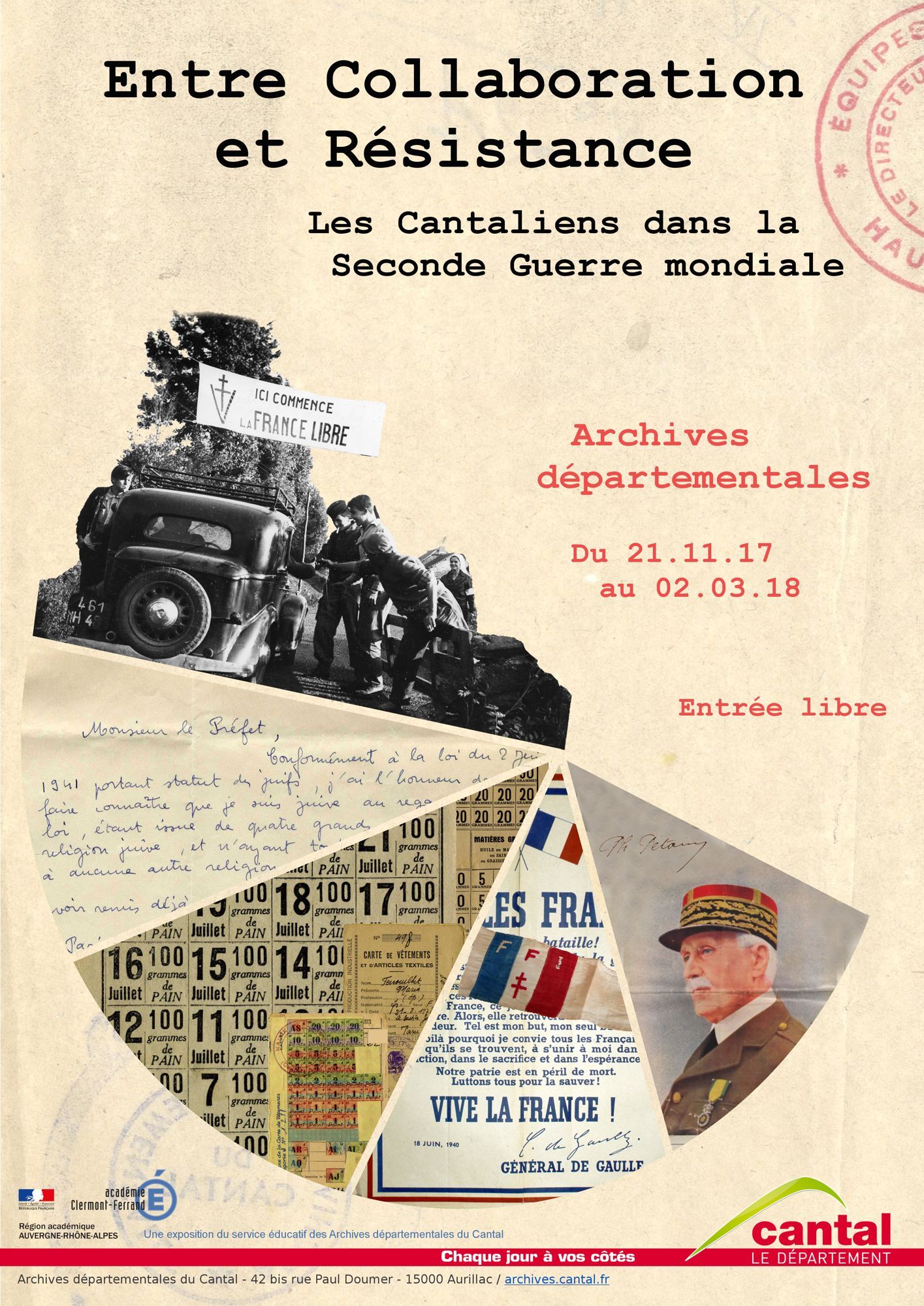 Exposition "Entre Collaboration et Résistance : les cantaliens dans la Seconde Guerre mondiale"