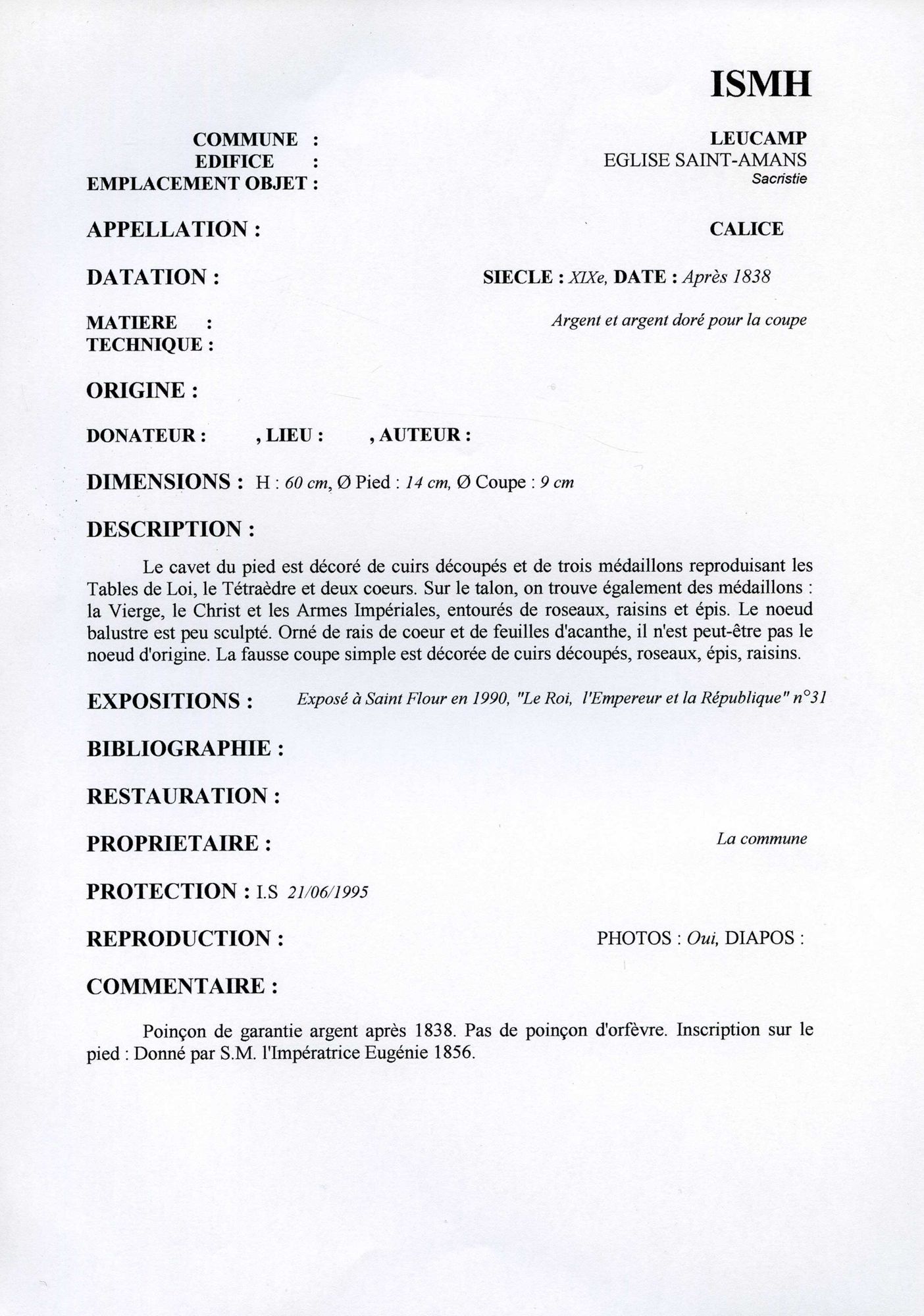 Calice, argent, donné par l'Impératrice
