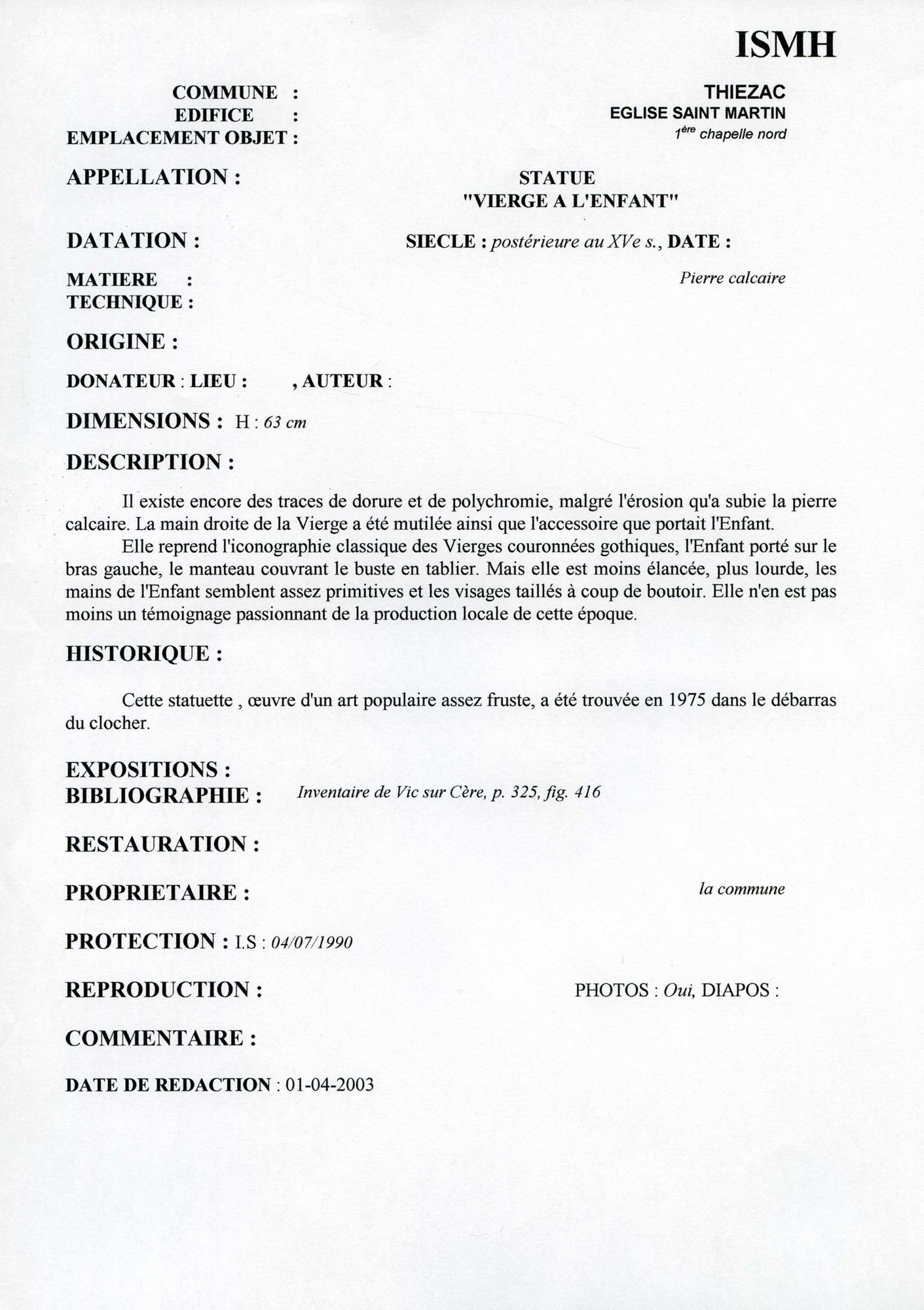 "Vierge à l'Enfant", postérieure XVe siècle, pierre calcaire