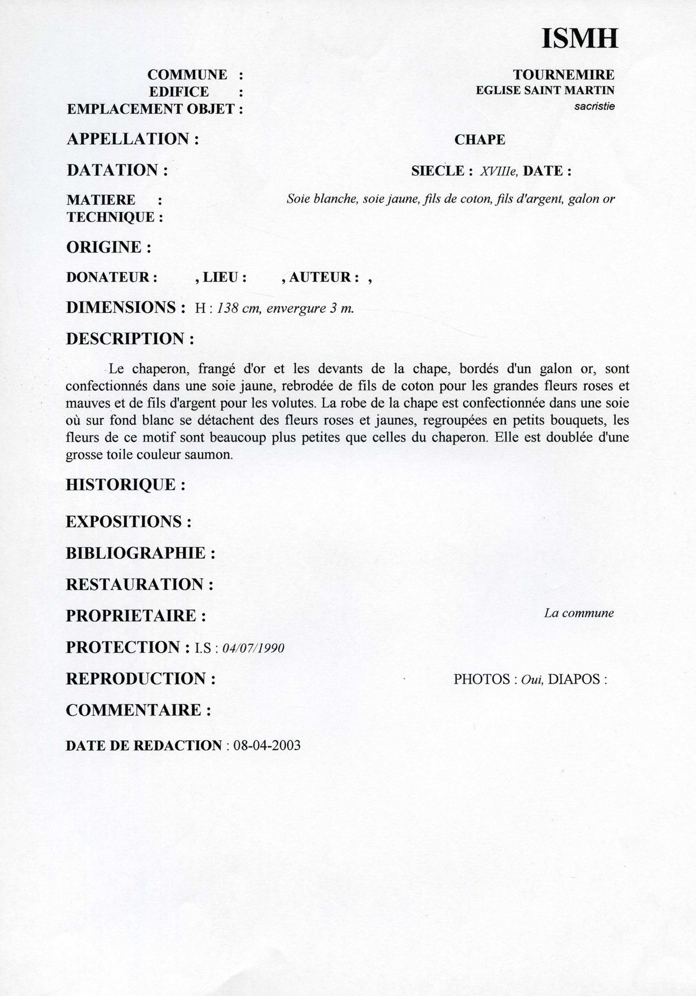 Chape, soie blanche et chaperon de satin rouge, franges or